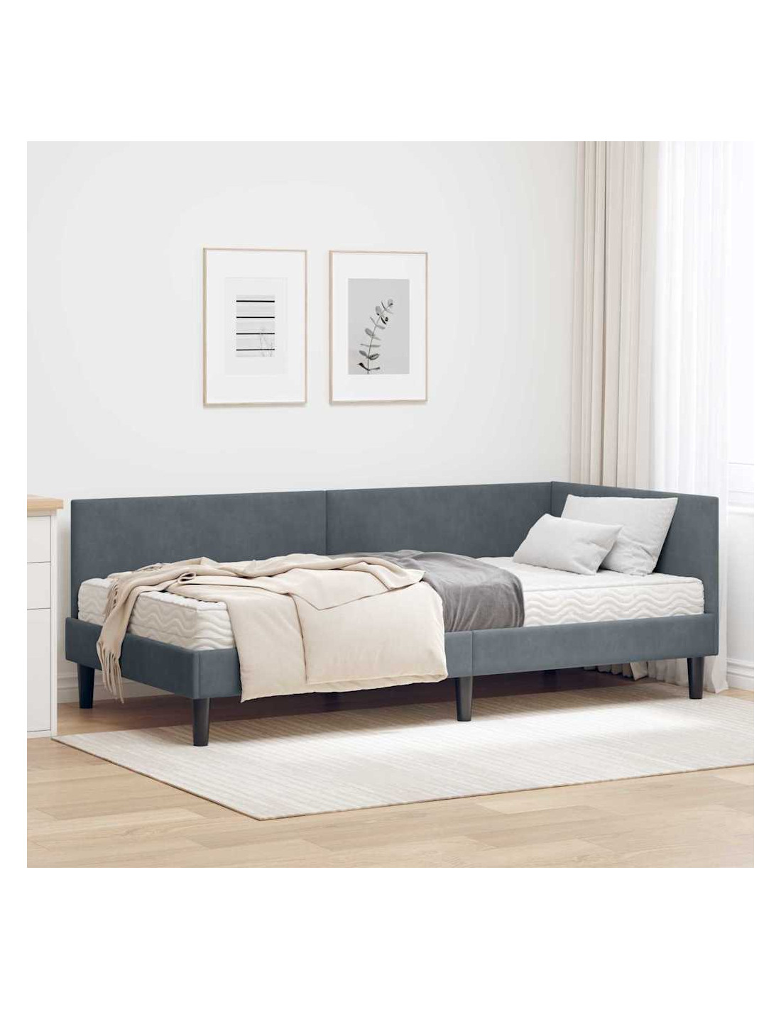Questo letto ad angolo in velluto con materasso è tutto stile per le camere moderne. Il design a piattaforma rettangolare si integra perfettamente in qualsiasi disposizione della camera, creando un centro elegante che emana sofisticazione con la sua texture vellutata. Perfetto per chi cerca sia forma che funzione, questo letto offre comfort ed estetica che piaceranno a chiunque.