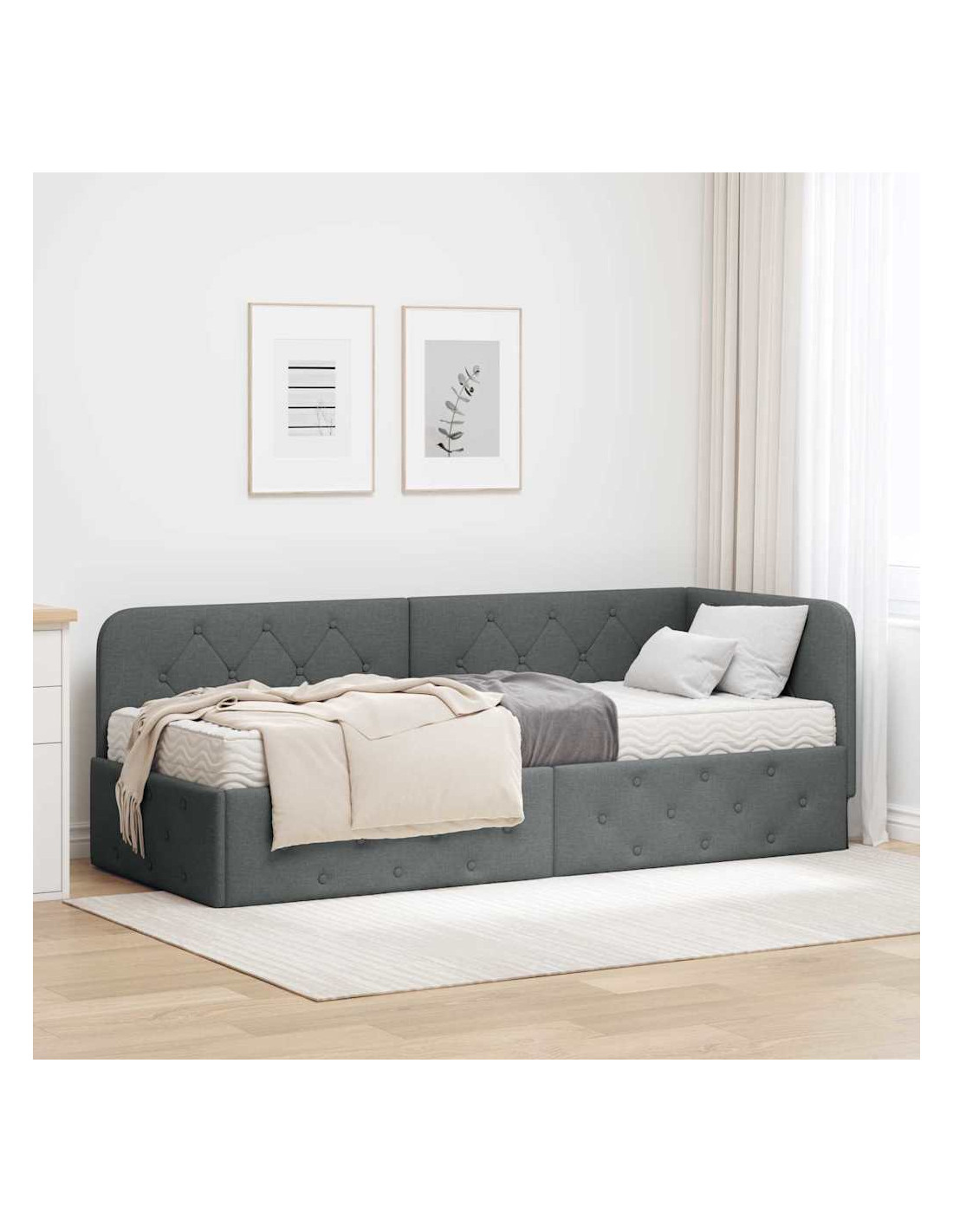 Questa struttura per letto d'angolo in tessuto ha un design moderno che si adatta perfettamente all'angolo della tua camera, risparmiando spazio e dando un look unico alla stanza. Puoi usarla come un comodo letto di giorno o come un'area notte accogliente. La sua forma rettangolare offre un design lineare, che è perfetto per appartamenti in città o interni minimalisti. Questa struttura combina forma e funzione, ed è ideale per chi vuole massimizzare lo spazio senza rinunciare allo stile.