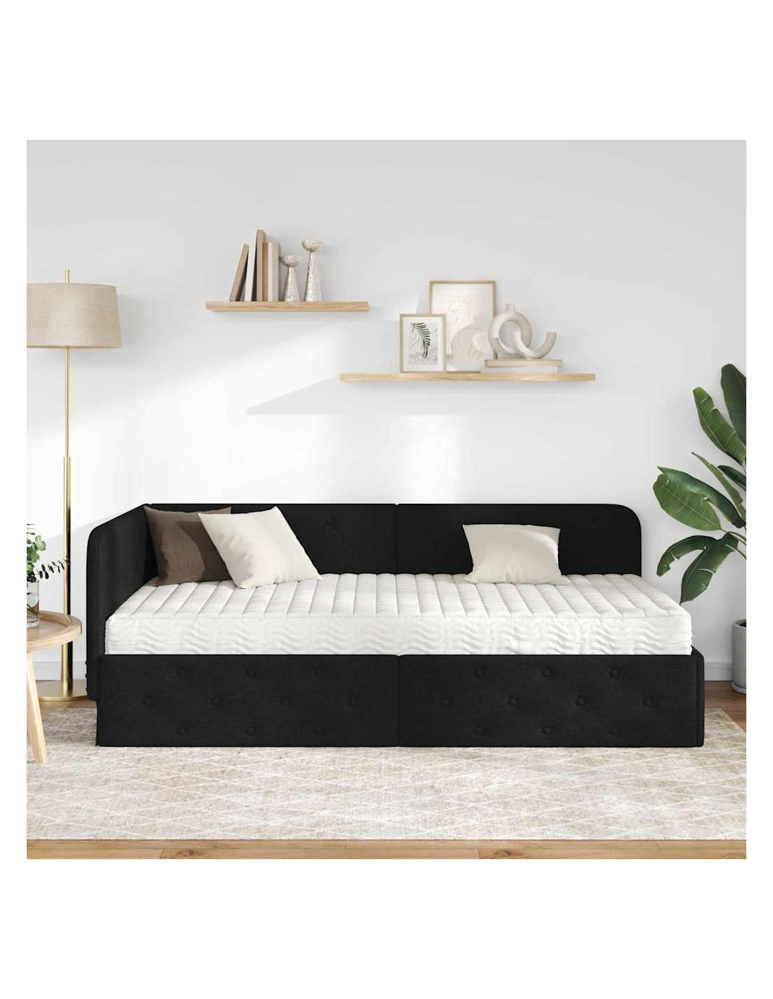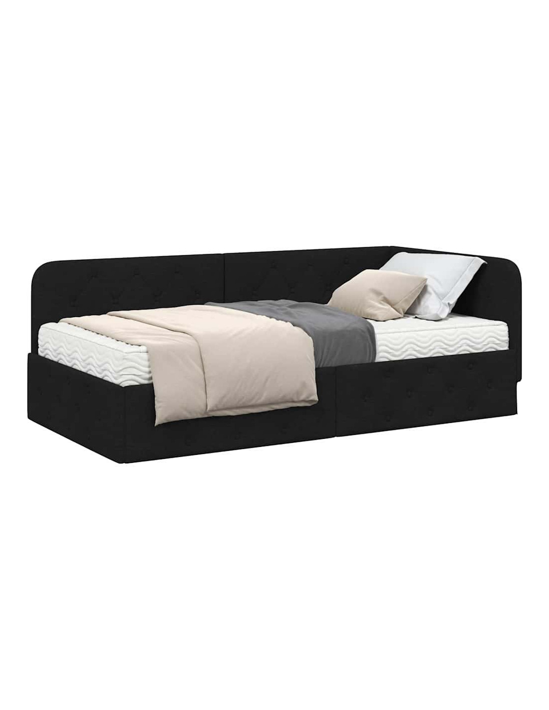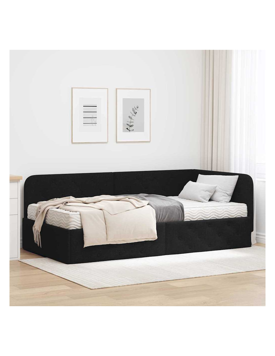 Questa struttura per letto d'angolo in tessuto ha un design moderno che si adatta perfettamente all'angolo della tua camera, risparmiando spazio e dando un look unico alla stanza. Puoi usarla come un comodo letto di giorno o come un'area notte accogliente. La sua forma rettangolare offre un design lineare, che è perfetto per appartamenti in città o interni minimalisti. Questa struttura combina forma e funzione, ed è ideale per chi vuole massimizzare lo spazio senza rinunciare allo stile.
