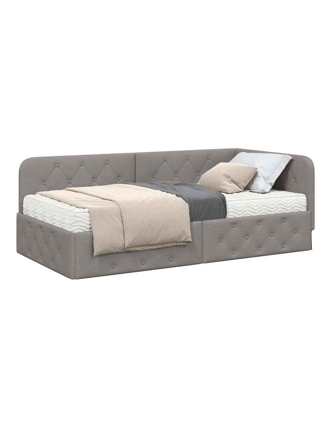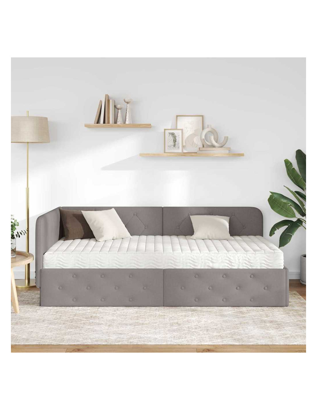 Questa struttura per letto d'angolo in tessuto ha un design moderno che si adatta perfettamente all'angolo della tua camera, risparmiando spazio e dando un look unico alla stanza. Puoi usarla come un comodo letto di giorno o come un'area notte accogliente. La sua forma rettangolare offre un design lineare, che è perfetto per appartamenti in città o interni minimalisti. Questa struttura combina forma e funzione, ed è ideale per chi vuole massimizzare lo spazio senza rinunciare allo stile.