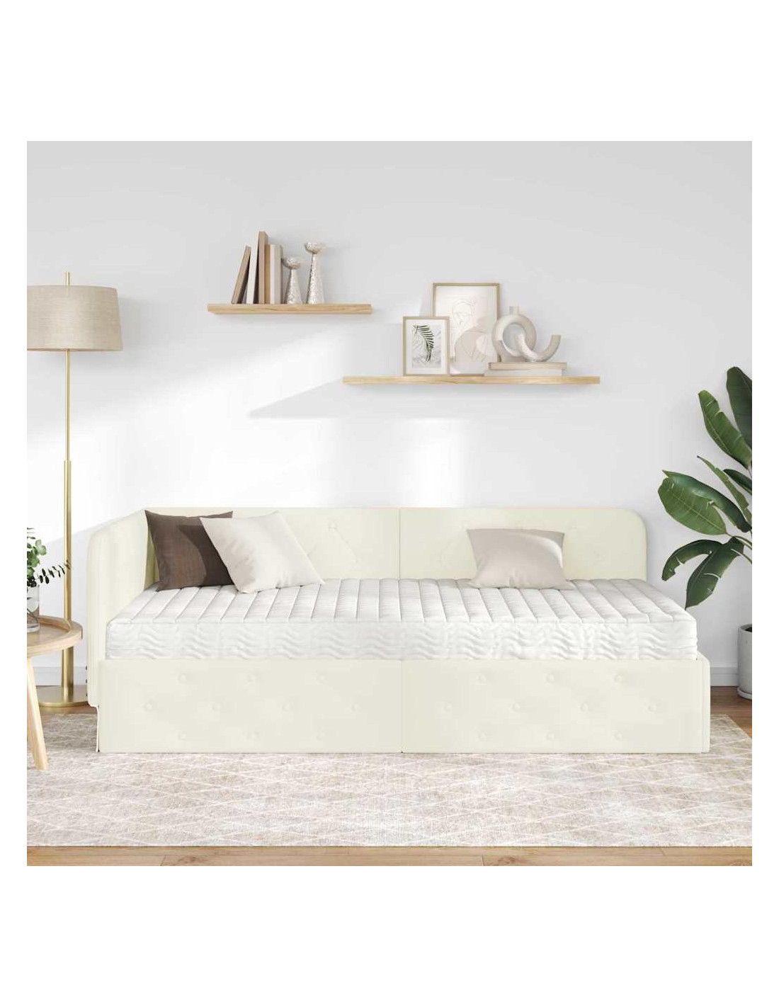 Questo lettino angolare moderno porta funzionalità ed eleganza in qualsiasi camera. Con il suo design a forma di L, è realizzato in compensato robusto e velluto morbido, offrendo un tocco delicato. Perfetto per singoli o famiglie, è versatile e funge sia da divano che da letto. Il suo stile sofisticato, unito alla multifunzionalità, rende questo pezzo l'aggiunta ideale a stanze moderne, migliorando comfort e estetica.