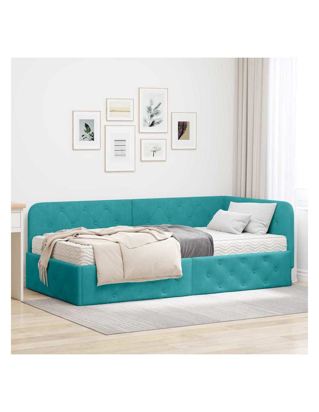 Questo lettino angolare moderno porta funzionalità ed eleganza in qualsiasi camera. Con il suo design a forma di L, è realizzato in compensato robusto e velluto morbido, offrendo un tocco delicato. Perfetto per singoli o famiglie, è versatile e funge sia da divano che da letto. Il suo stile sofisticato, unito alla multifunzionalità, rende questo pezzo l'aggiunta ideale a stanze moderne, migliorando comfort e estetica.