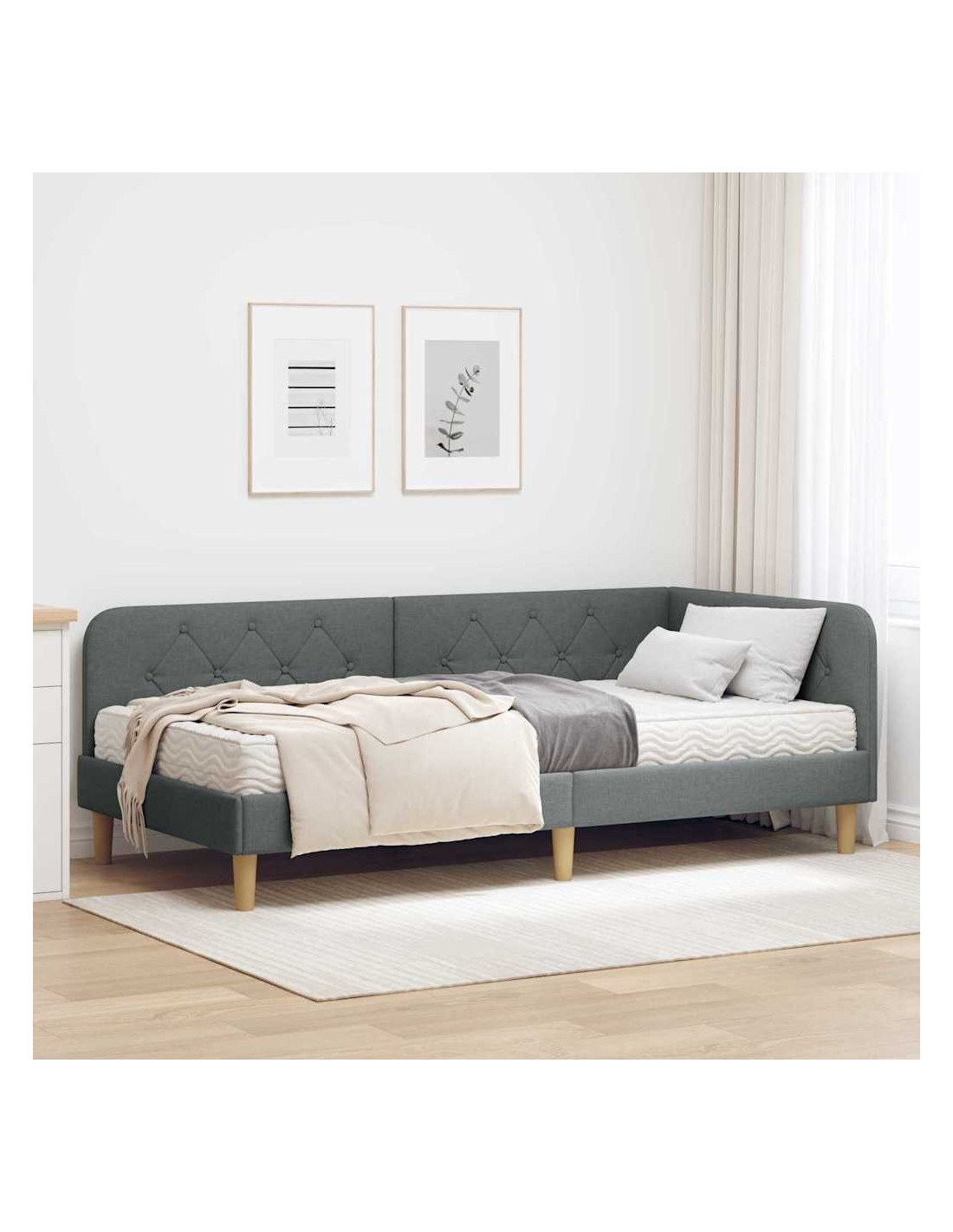 Questo telaio per letto angolare in tessuto unisce funzionalità e design moderno, perfetto per spazi urbani. Con la sua forma rettangolare e configurazione a L, è l'ideale per chi vuole massimizzare il proprio spazio. Si inserisce perfettamente negli angoli della camera, offrendo sia una soluzione per dormire sia per sedere senza rinunciare allo stile.