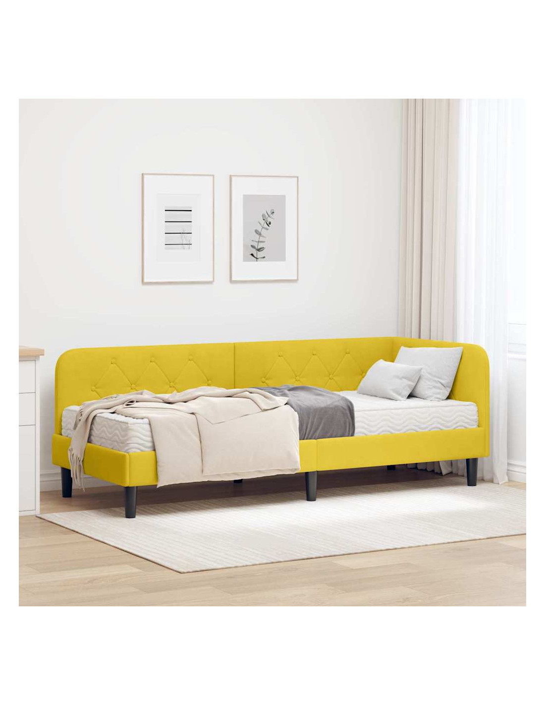 Questo Telaio per Letto Angolare in Tessuto è una soluzione elegante e pratica per qualsiasi camera. Con la sua forma a L, si adatta perfettamente agli angoli, aiutando a risparmiare spazio e si adatta a vari layout. Il tessuto vellutato è morbido e lussuoso, rendendo la tua camera ancora più accogliente.