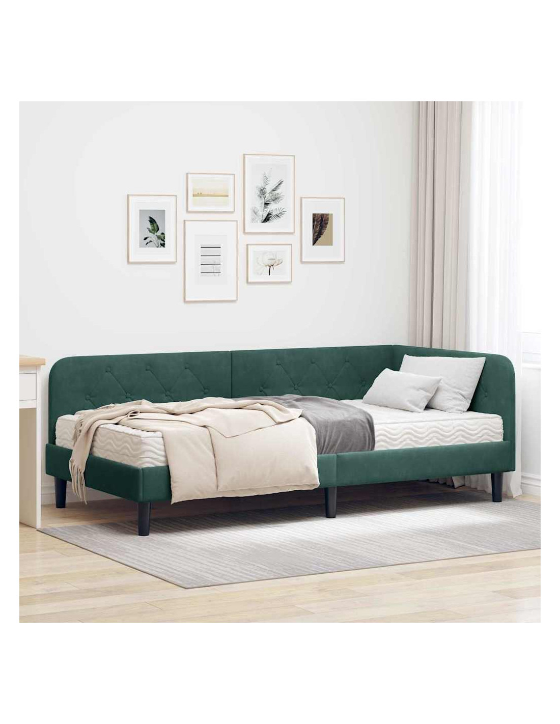 Questo Telaio per Letto Angolare in Tessuto è una soluzione elegante e pratica per qualsiasi camera. Con la sua forma a L, si adatta perfettamente agli angoli, aiutando a risparmiare spazio e si adatta a vari layout. Il tessuto vellutato è morbido e lussuoso, rendendo la tua camera ancora più accogliente.