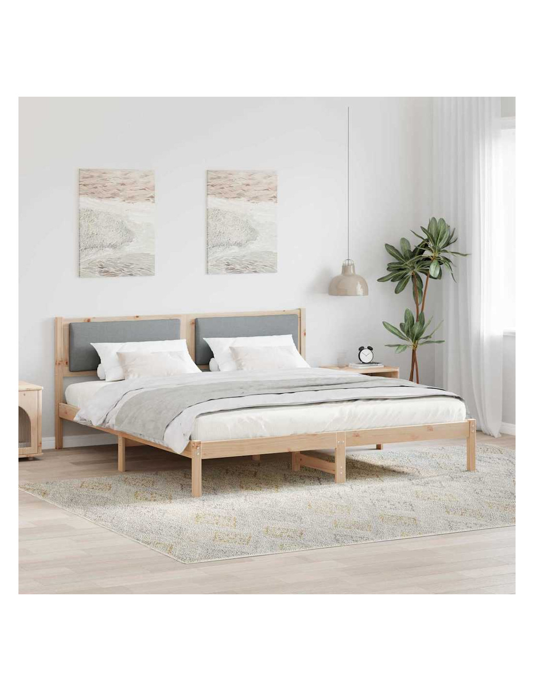 - Struttura in Legno Massello di Pino Questo letto è fatto di legno massello di pino di alta qualità e offre stabilità e durata, resistendo all'uso quotidiano. La texture naturale dei materiali aggiunge un tocco accogliente e bello alla tua camera.