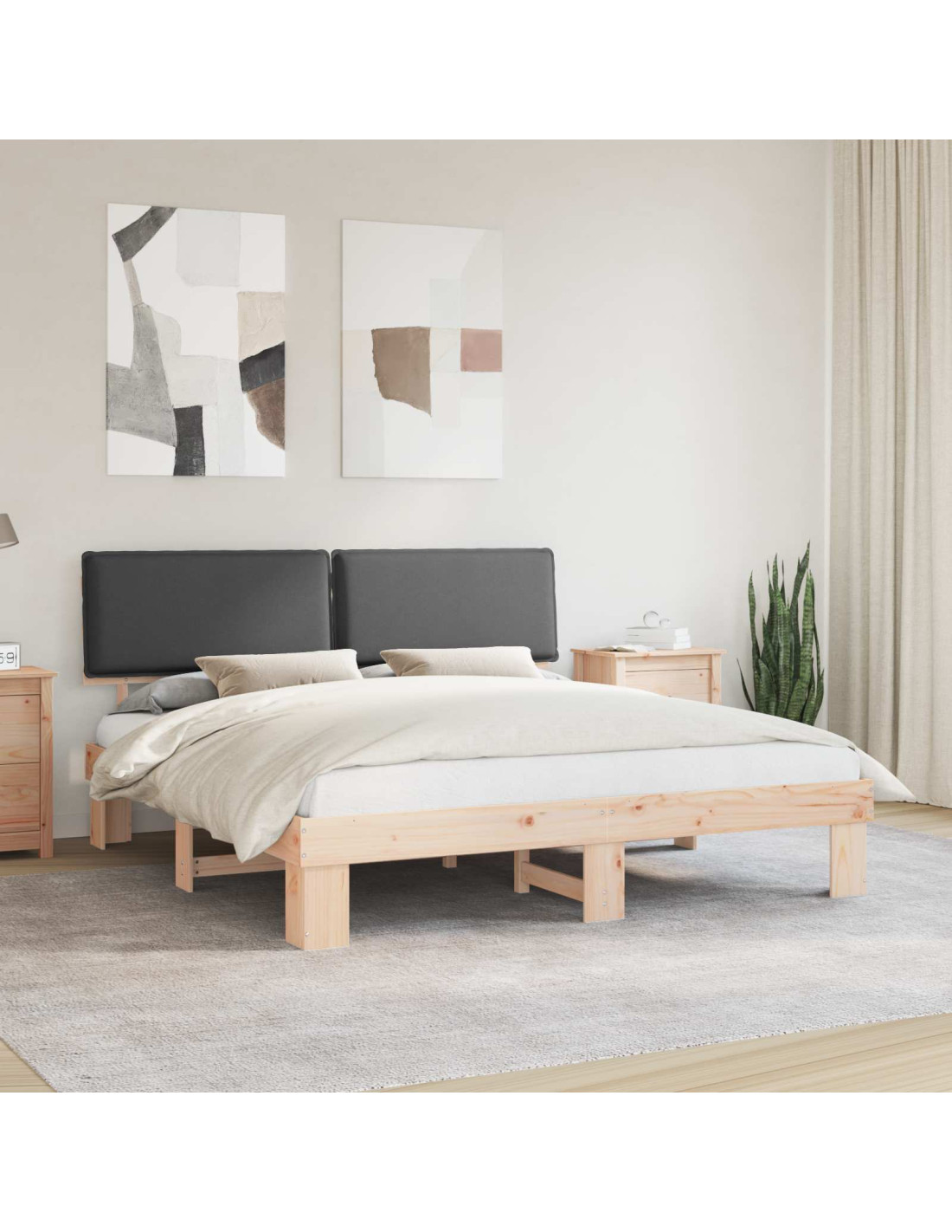 Questa Struttura Letto in Legno con Testiera Imbottita ha un design moderno che unisce funzionalità e semplicità in un look elegante. Perfetta per chi ama linee pulite e uno stile minimalista, offre una soluzione solida per dormire che si adatta a qualsiasi decorazione della camera.