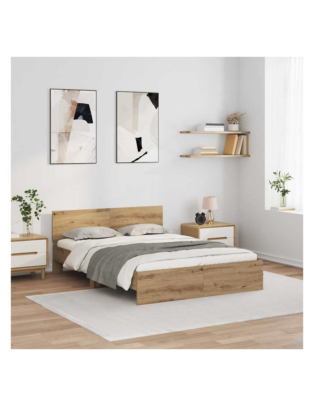 - Materiale in legno ingegnerizzato: Questa struttura letto è fatta con legno ingegnerizzato di alta qualità che assicura durata e modernità. La finitura elegante si integra bene nei contesti contemporanei della camera da letto. È nota per la sua forza e resistenza, rendendola un pezzo centrale bello e conveniente per la camera.