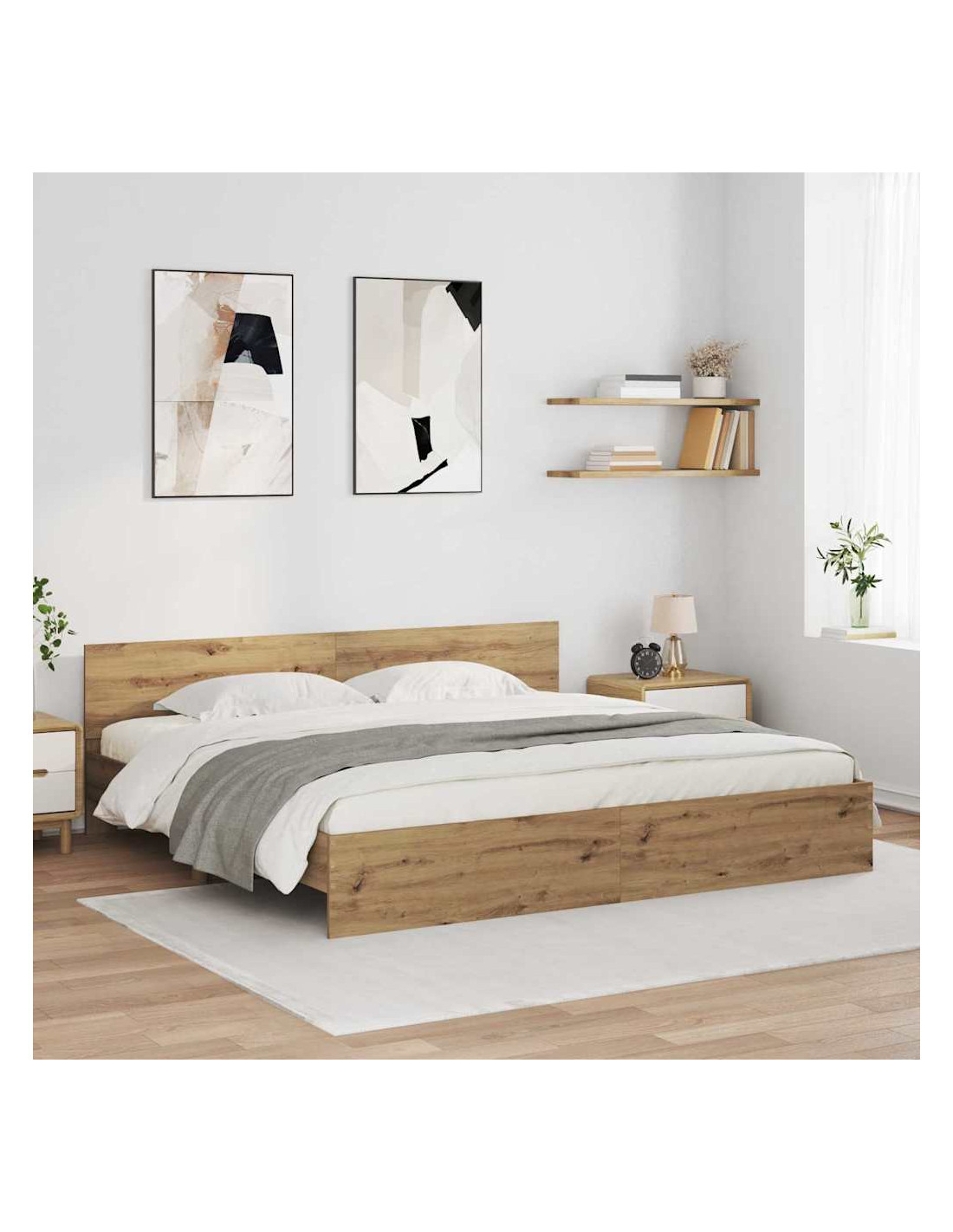 - Materiale in legno ingegnerizzato: Questa struttura letto è fatta con legno ingegnerizzato di alta qualità che assicura durata e modernità. La finitura elegante si integra bene nei contesti contemporanei della camera da letto. È nota per la sua forza e resistenza, rendendola un pezzo centrale bello e conveniente per la camera.