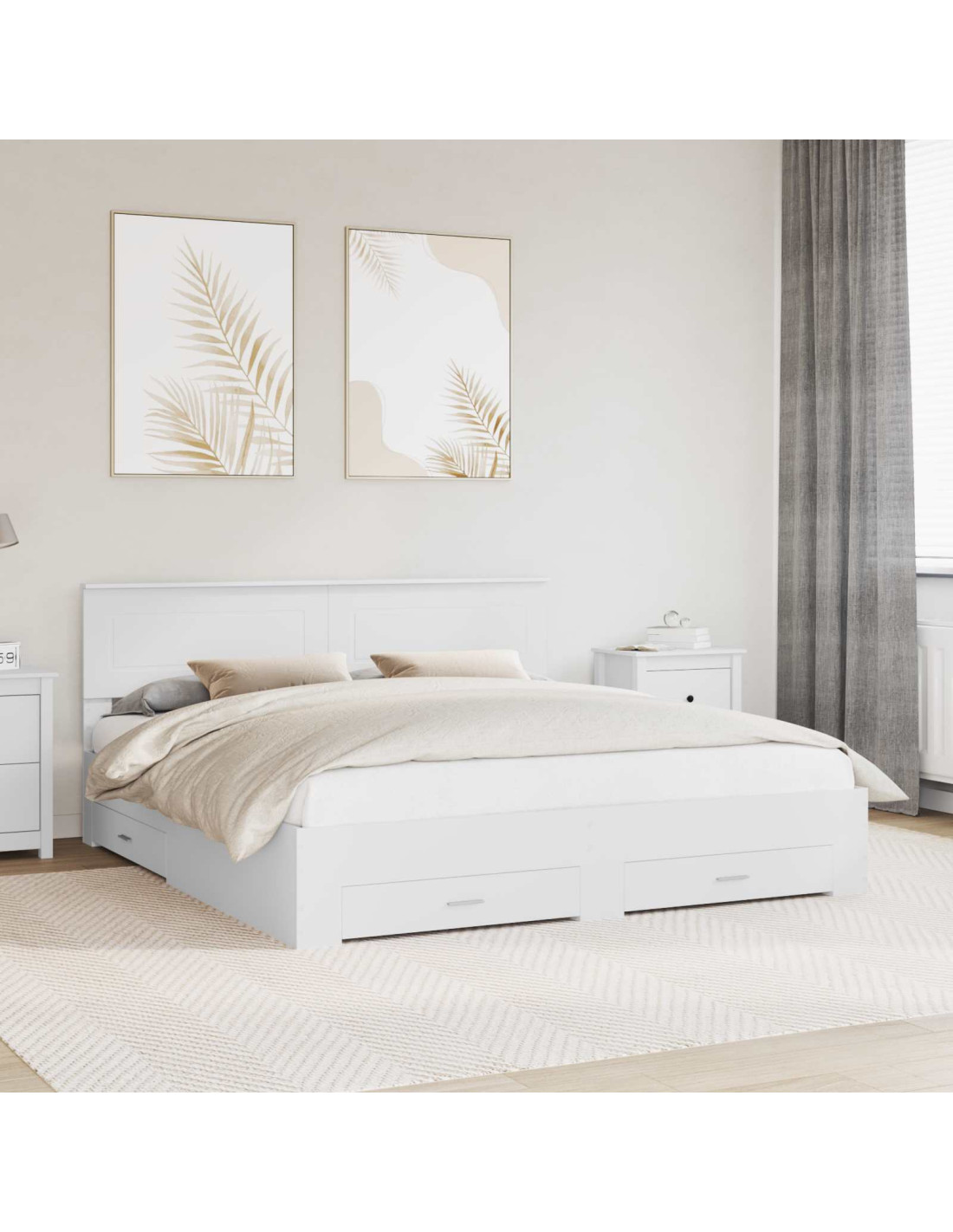 - Spazio di archiviazione ampio Pensato per una vita pratica, il letto ha cassetti spaziosi, ideali per tenere tutto in ordine. Questi scomparti sono integrati nel design, assicurando un'ottima capacità senza compromettere l'estetica semplice del letto.