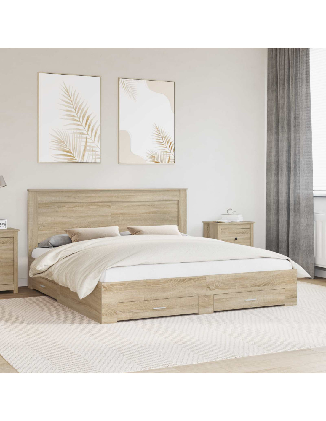 Questo telaio letto è la combinazione perfetta di bellezza e funzionalità. Trasforma ogni camera da letto in un rifugio elegante. Con linee pulite e un design semplice, si abbina perfettamente ai tuoi interni moderni. È fatto in legno ingegnerizzato per durare nel tempo e per dare un tocco di classe. È perfetto per chi vive in città e cerca di sfruttare al meglio lo spazio nella propria camera. La finitura liscia e i dettagli raffinati creano un'atmosfera accogliente, rendendolo un pezzo centrale per ogni camera da letto.