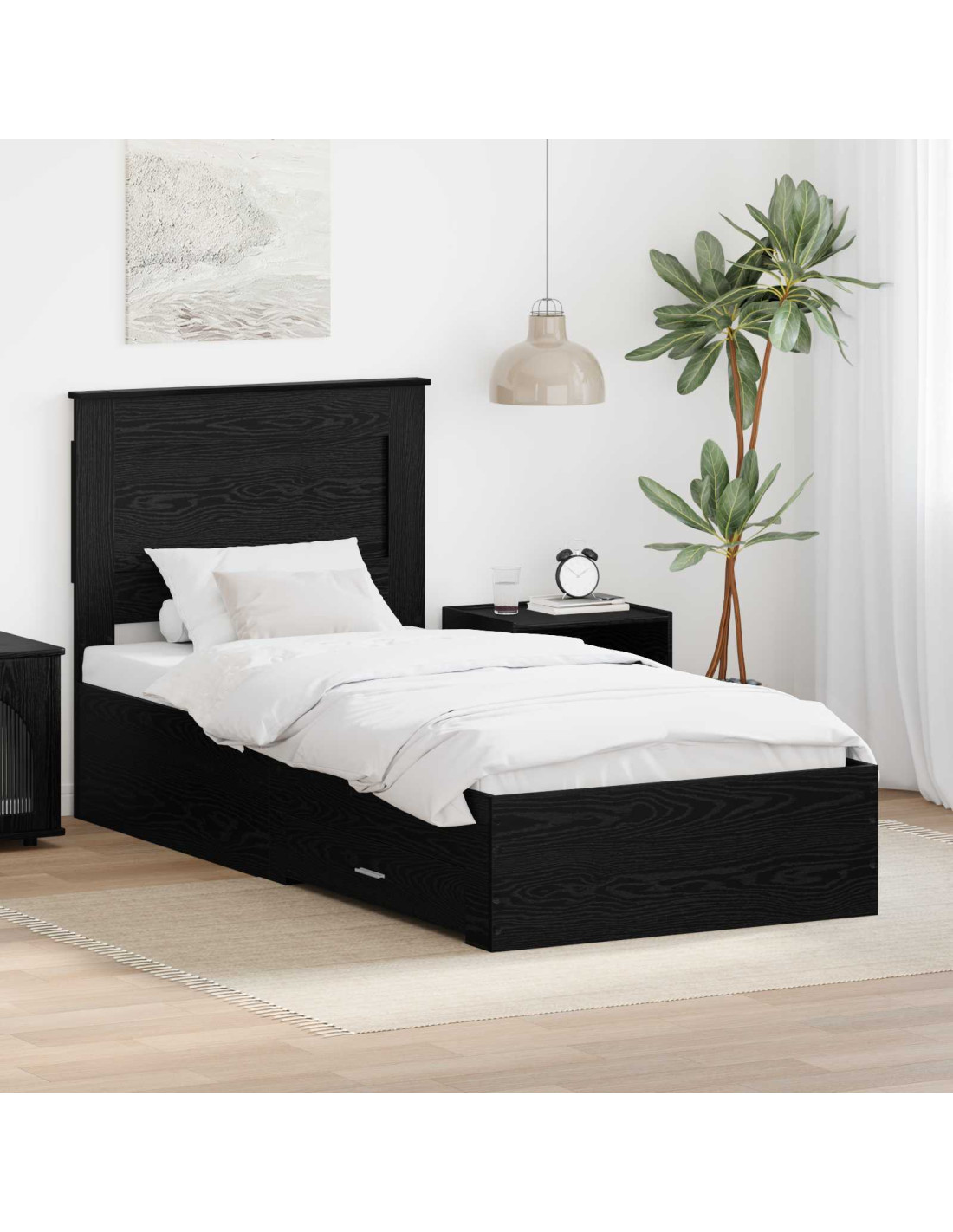 Questo telaio letto è la combinazione perfetta di bellezza e funzionalità. Trasforma ogni camera da letto in un rifugio elegante. Con linee pulite e un design semplice, si abbina perfettamente ai tuoi interni moderni. È fatto in legno ingegnerizzato per durare nel tempo e per dare un tocco di classe. È perfetto per chi vive in città e cerca di sfruttare al meglio lo spazio nella propria camera. La finitura liscia e i dettagli raffinati creano un'atmosfera accogliente, rendendolo un pezzo centrale per ogni camera da letto.