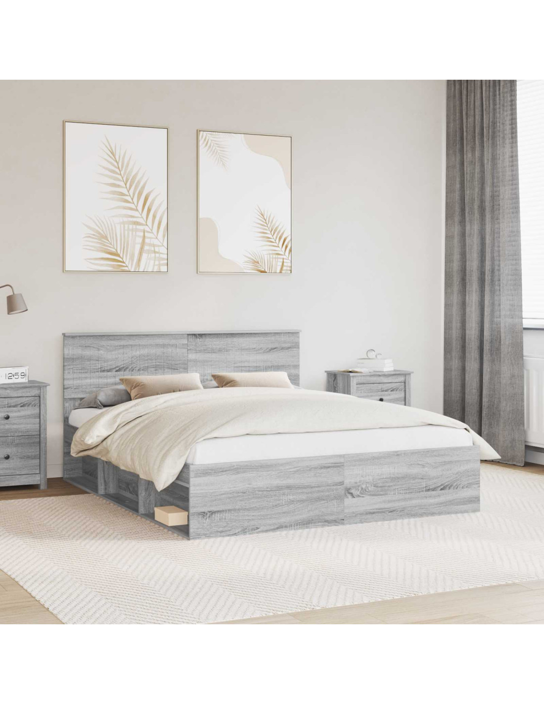 - Struttura in legno ingegnerizzato: Questo letto è costruito in legno ingegnerizzato, assicurando stabilità e un aspetto snello. È un materiale resistente che ti garantisce qualità nel tempo.