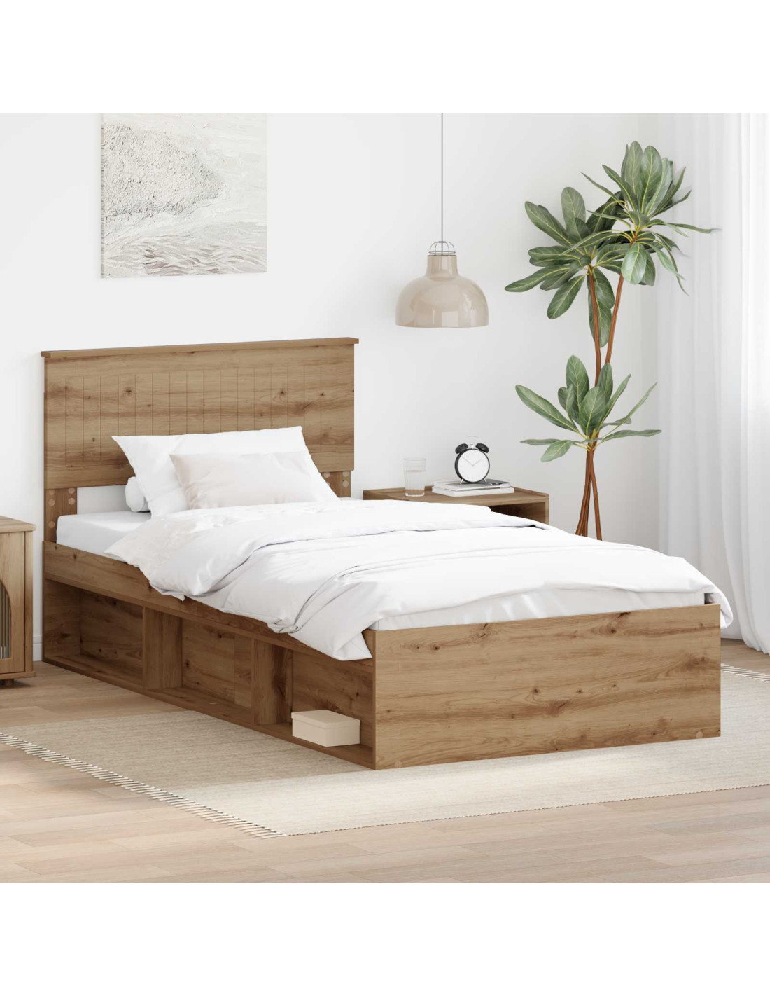 - Struttura in legno ingegnerizzato: Questo letto è costruito in legno ingegnerizzato, assicurando stabilità e un aspetto snello. È un materiale resistente che ti garantisce qualità nel tempo.