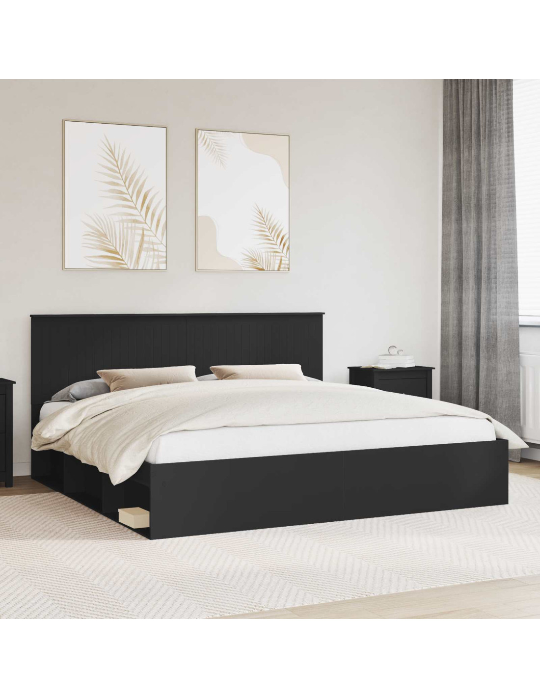 - Legno ingegnerizzato e pino massello: Il telaio è in legno ingegnerizzato, noto per la sua robustezza e stile chic. La testiera in pino massello aggiunge un tocco naturale, fornendo robustezza e un aspetto elegante. Insieme, questi materiali garantiscono forza e comfort per un buon sonno.