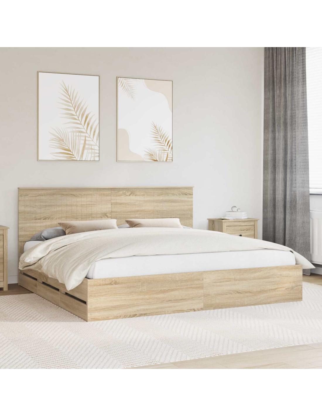 Questo telaio del letto moderno ha un design elegante e minimalista, perfetto per ambienti contemporanei. Realizzato in legno ingegnerizzato, il suo aspetto semplice ma di grande impatto è funzionale e piacevole da vedere, migliorando l'aspetto di qualsiasi stanza. Con linee pulite e una finitura liscia, porta calma nella camera, ideale per chi cerca semplicità ed eleganza. È versatile e si adatta a vari stili d'interni, offrendo una base perfetta per dormire sereni.