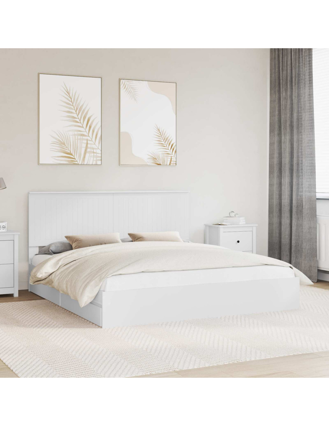 - Struttura letto in legno ingegnerizzato: Questo letto è realizzato in legno ingegnerizzato di alta qualità, durevole e pratico, per una base affidabile. Scegliamo questo materiale per la sua solidità, così offre un pezzo che rimane centrale in ogni casa moderna.