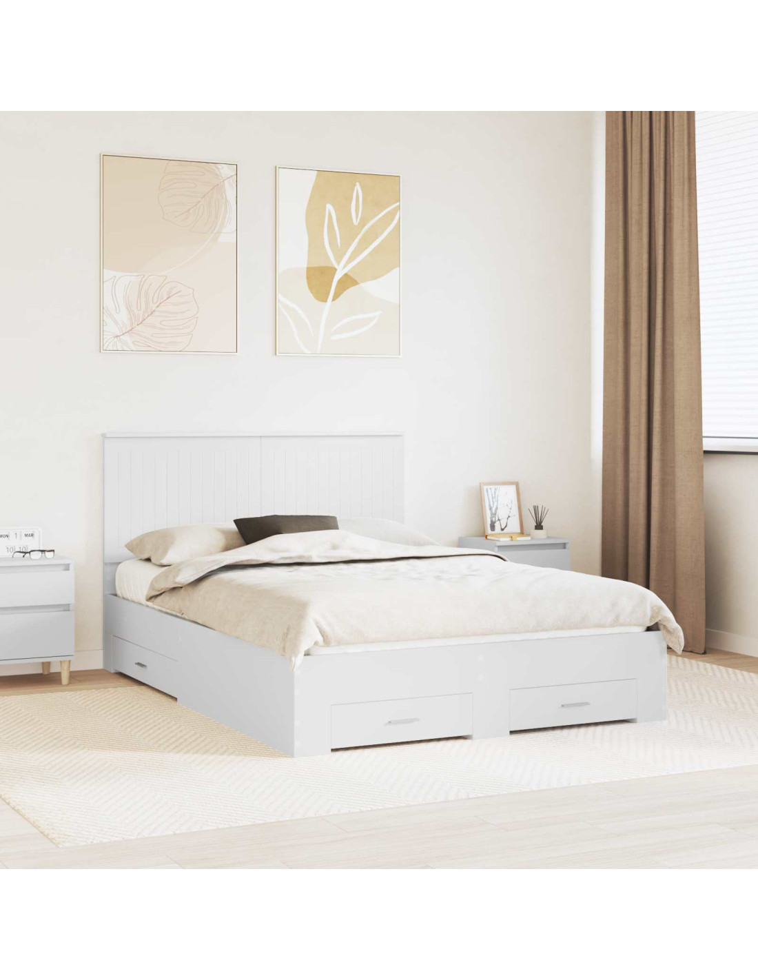 - Opzioni di stoccaggio generose: Il letto ha cassetti tradizionali, ottimo per nascondere biancheria da letto o vestiti, mantenendo ordine e accessibilità nella camera. Così hai un ambiente pulito e ben organizzato.