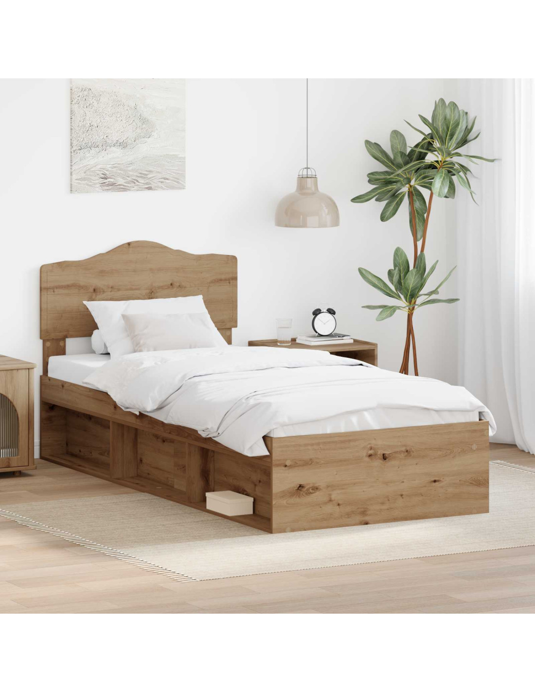 - Materiali: Realizzato con una combinazione di Legno Ingegnerizzato e Legno Massello di Pino, questo letto unisce resistenza e bellezza. Questi materiali garantiscono lunga durata e donano calore alla stanza.
