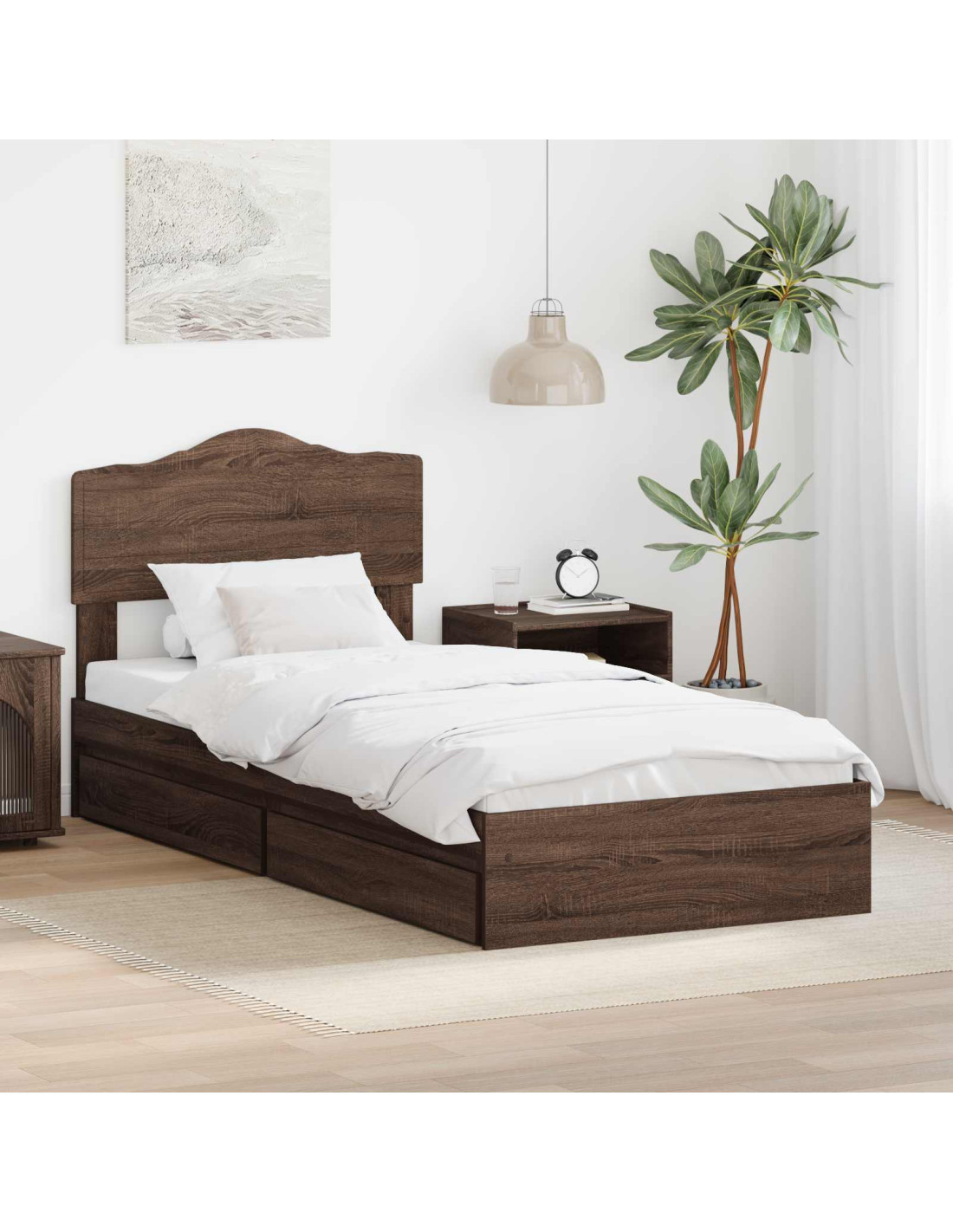 - Materiali: Questo telaio del letto è fatto di legno ingegnerizzato di alta qualità. È robusto e durevole, garantendo stabilità per tanti anni. Questo materiale è perfetto per chi cerca una base solida per un sonno riposante e vuole anche preoccuparsi dell'ambiente.
