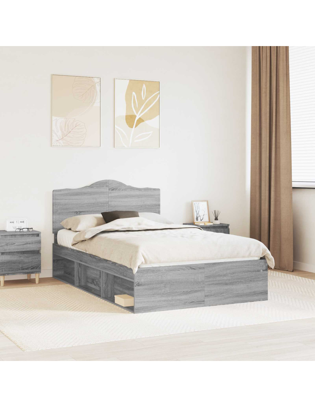 Questo telaio letto moderno e chic è assolutamente ideale per chi cerca un pezzo sia pratico che elegante per la propria camera. Con un design minimal e linee semplici, si integra perfettamente in qualsiasi ambiente contemporaneo, creando un'atmosfera calmante e accogliente. Costruito in legno ingegnerizzato, offre una base solida per notti tranquille. La testata in legno massello di pino completa il look, garantendo sia stile che sostegno. Il letto è perfetto per adulti e bambini, rendendolo un ottimo elemento per migliorare l'estetica della stanza.