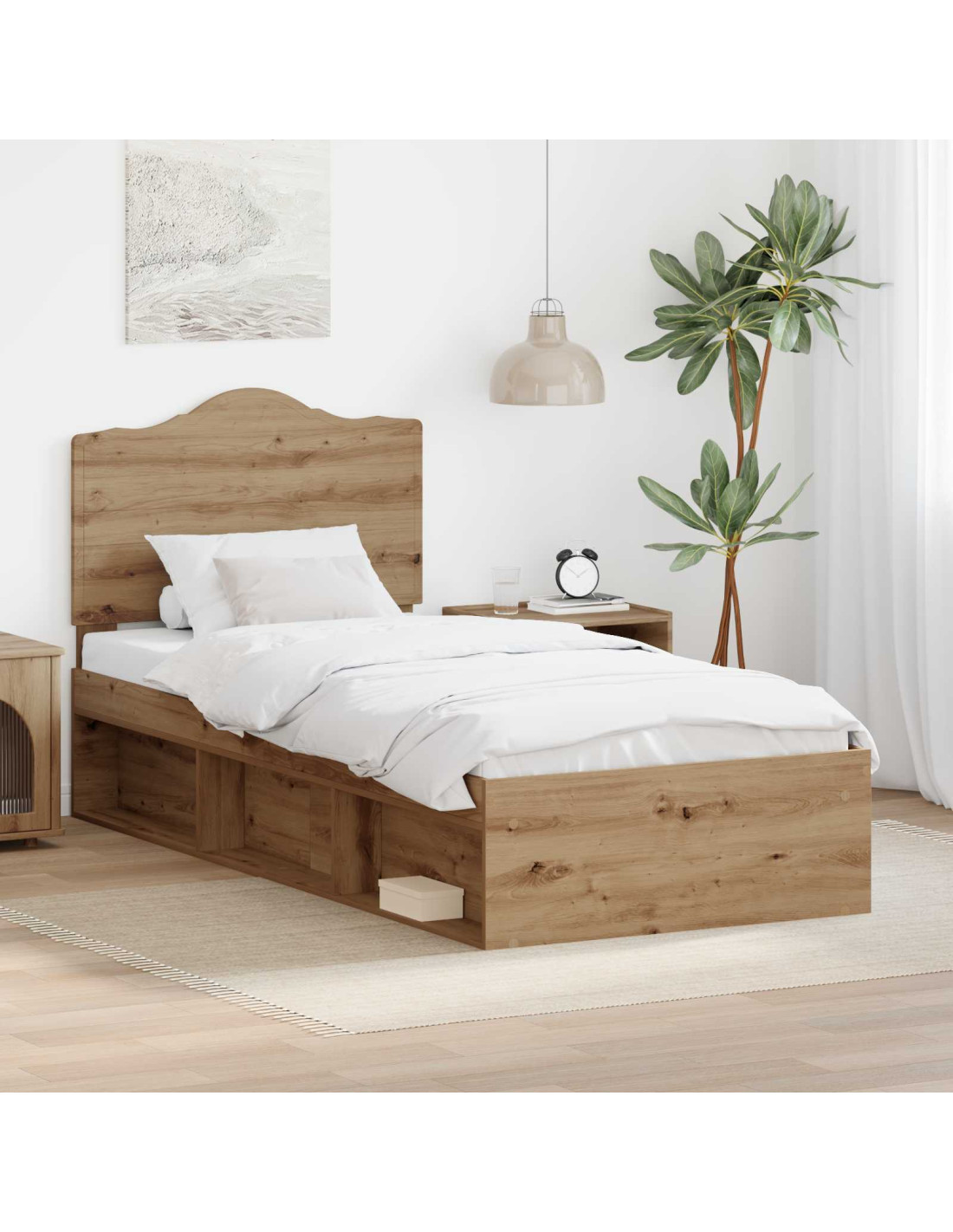 Questo telaio letto moderno e chic è assolutamente ideale per chi cerca un pezzo sia pratico che elegante per la propria camera. Con un design minimal e linee semplici, si integra perfettamente in qualsiasi ambiente contemporaneo, creando un'atmosfera calmante e accogliente. Costruito in legno ingegnerizzato, offre una base solida per notti tranquille. La testata in legno massello di pino completa il look, garantendo sia stile che sostegno. Il letto è perfetto per adulti e bambini, rendendolo un ottimo elemento per migliorare l'estetica della stanza.