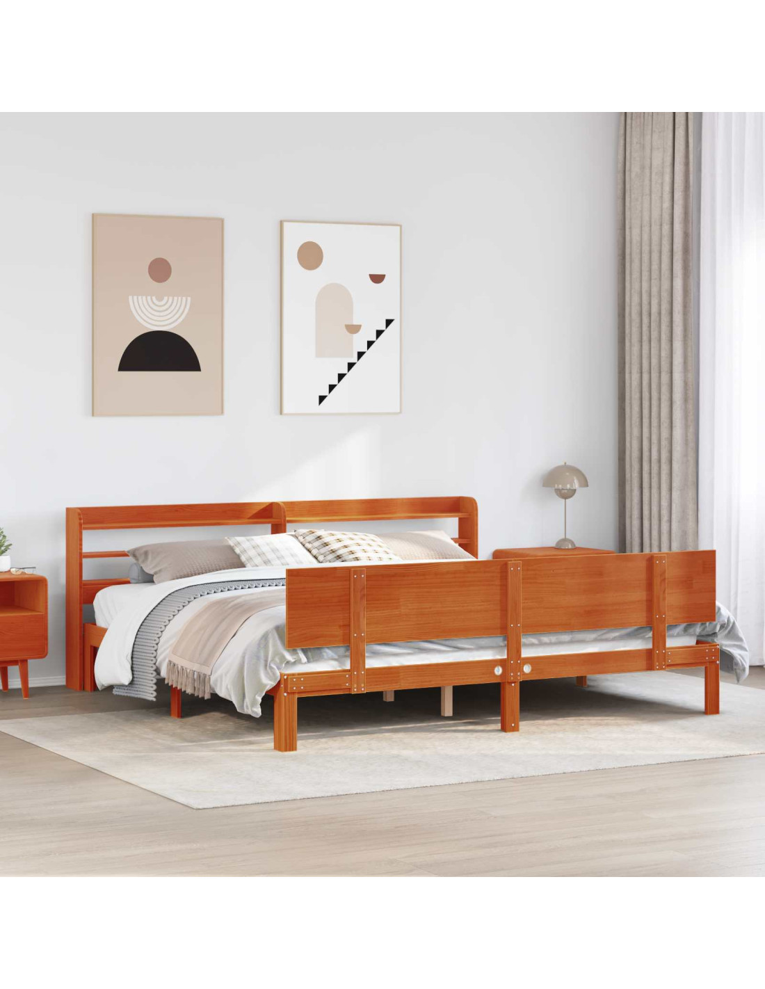 Questa struttura letto in legno per la camera da letto moderna mescola semplicità e funzionalità. La sua forma rettangolare e le linee pulite la rendono super versatile, mentre il colore marrone cerato porta calore in qualsiasi ambiente. Abbinala a vari stili della camera da letto e avrai un'area notte accogliente e alla moda, ideale per chi ama il minimalismo o uno stile più vario.