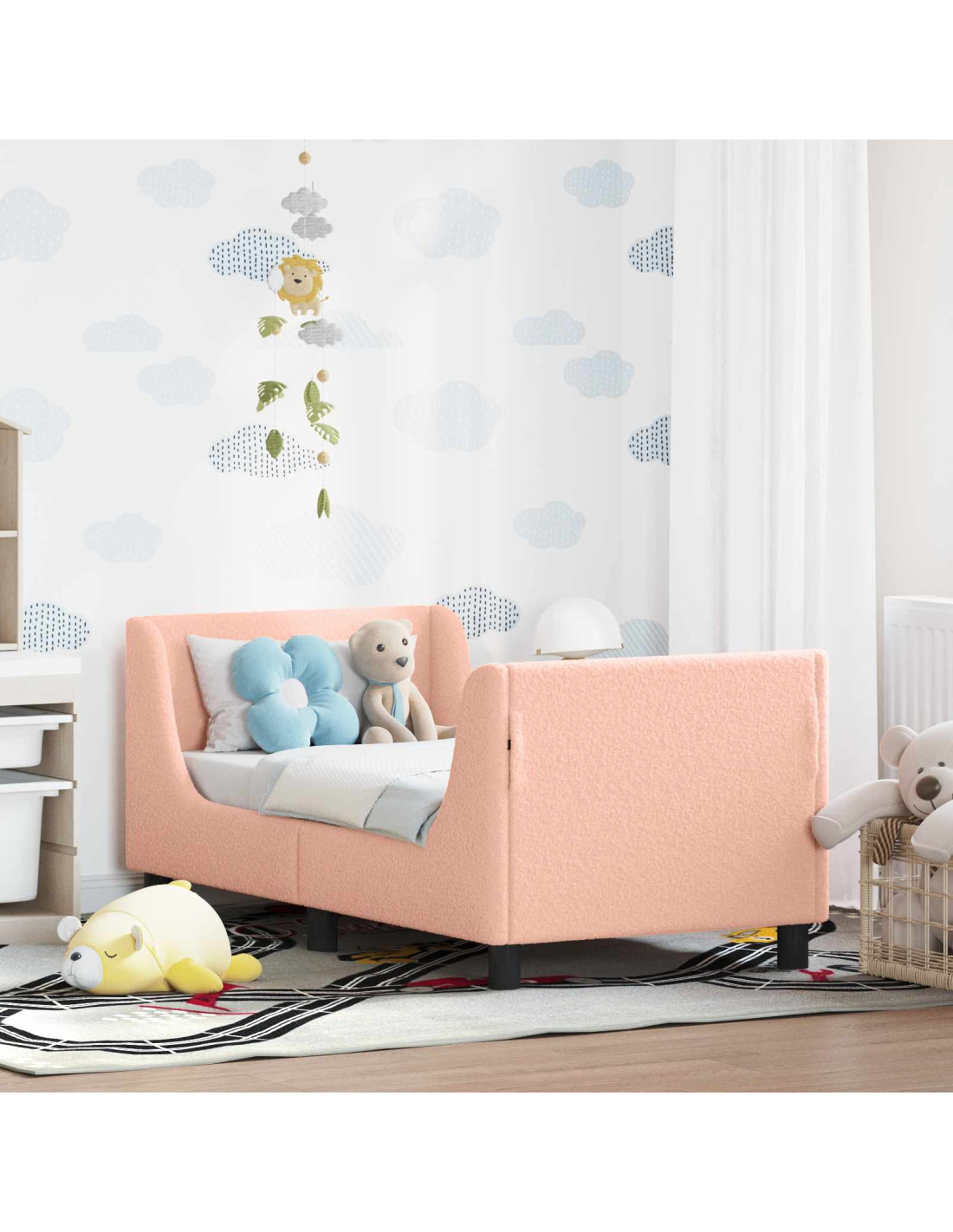 Questo letto moderno è una soluzione semplice ma elegante per la tua camera. Con la sua forma rettangolare elegante, unisce la durabilità del legno ingegnerizzato alla morbidezza del tessuto di pecora, creando un look accogliente. È l'ideale per chi vuole un pezzo che combini estetica e funzionalità. Il design a profilo basso e le linee pulite lo rendono perfetto per spazi minimalisti, portando una sensazione di calma in qualsiasi camera da letto.