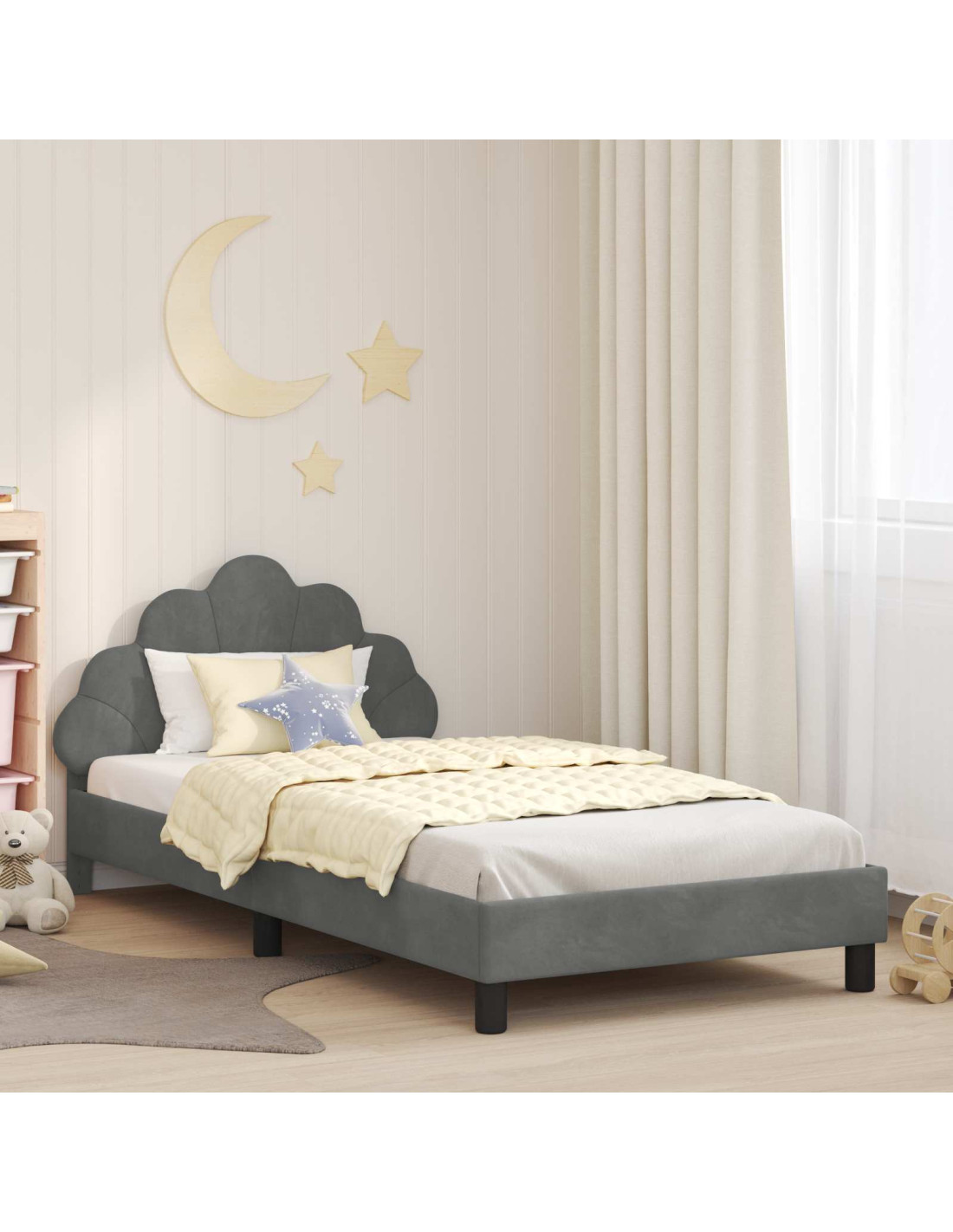 - materiali in velluto e legno ingegnerizzato Il rivestimento in velluto dà un tocco morbido e lussuoso, mentre il telaio in legno ingegnerizzato assicura durabilità e resistenza nel tempo, fornendo supporto solido per notti di sonno riposante.