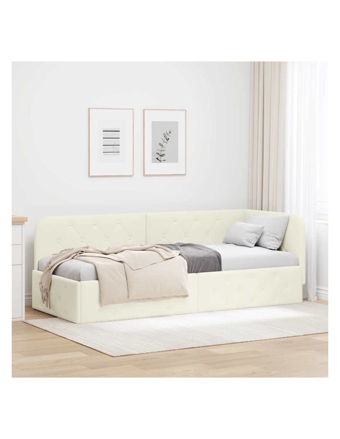 Questo letto angolare in velluto ridefinisce lo stile moderno con il suo design elegante a forma di L, ed è perfetto per qualsiasi camera da letto. Il suo rivestimento in velluto offre comfort e stile, mentre la struttura tipo piattaforma permette di posizionarlo in spazi ristretti o come pezzo centrale in stanze più grandi.