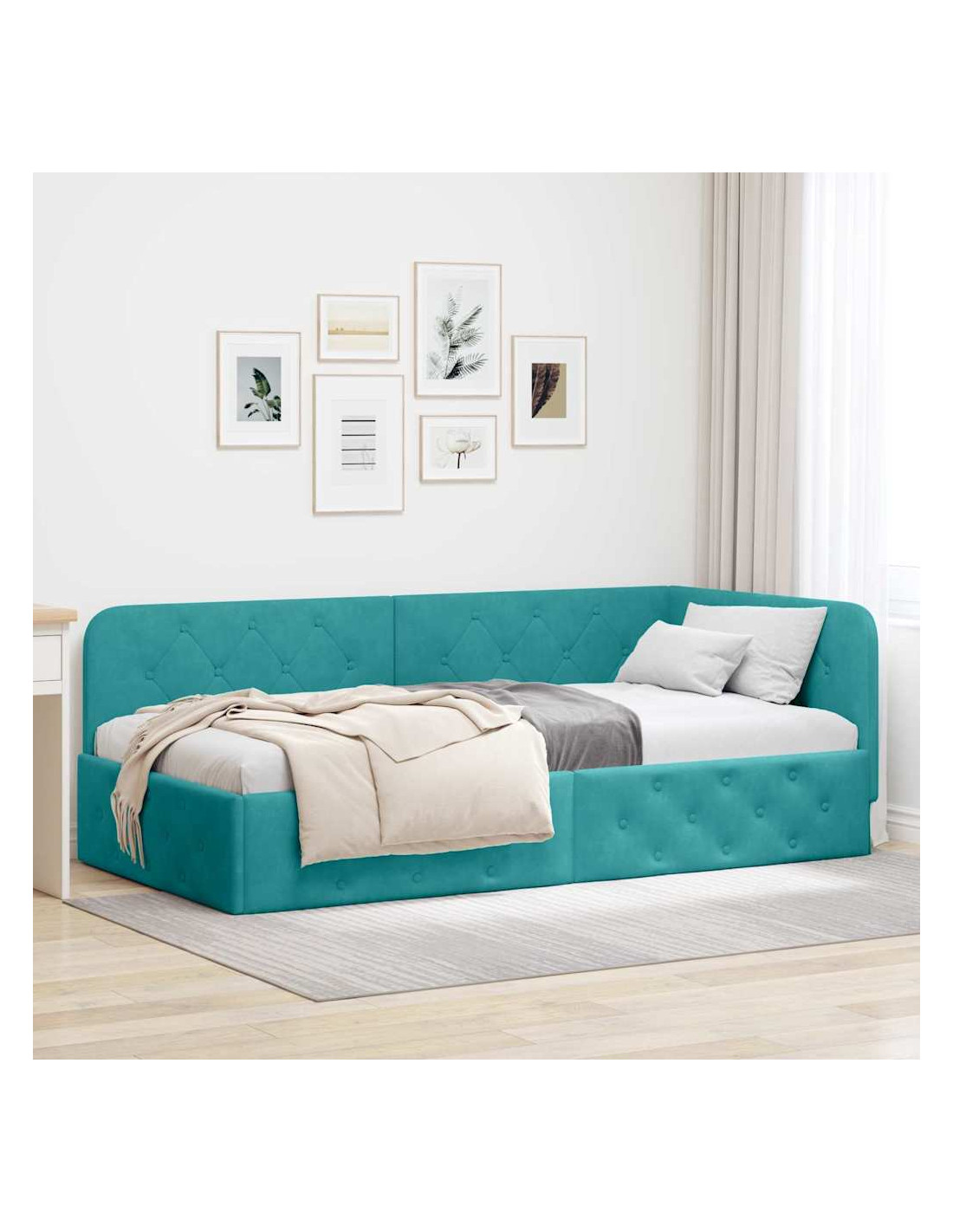 Questo letto angolare in velluto ridefinisce lo stile moderno con il suo design elegante a forma di L, ed è perfetto per qualsiasi camera da letto. Il suo rivestimento in velluto offre comfort e stile, mentre la struttura tipo piattaforma permette di posizionarlo in spazi ristretti o come pezzo centrale in stanze più grandi.