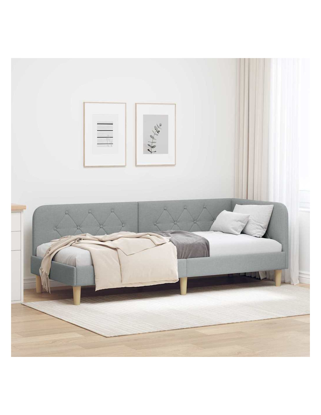 Questo telaio del letto angolare in tessuto è un letto giorno moderno pensato per il relax e il sonno. La struttura a L è ideale per qualsiasi angolo della camera e può essere usata come divano o letto. Perfetto per chi ama la praticità senza rinunciare all'estetica, offre un tocco contemporaneo adatto a varie disposizioni.