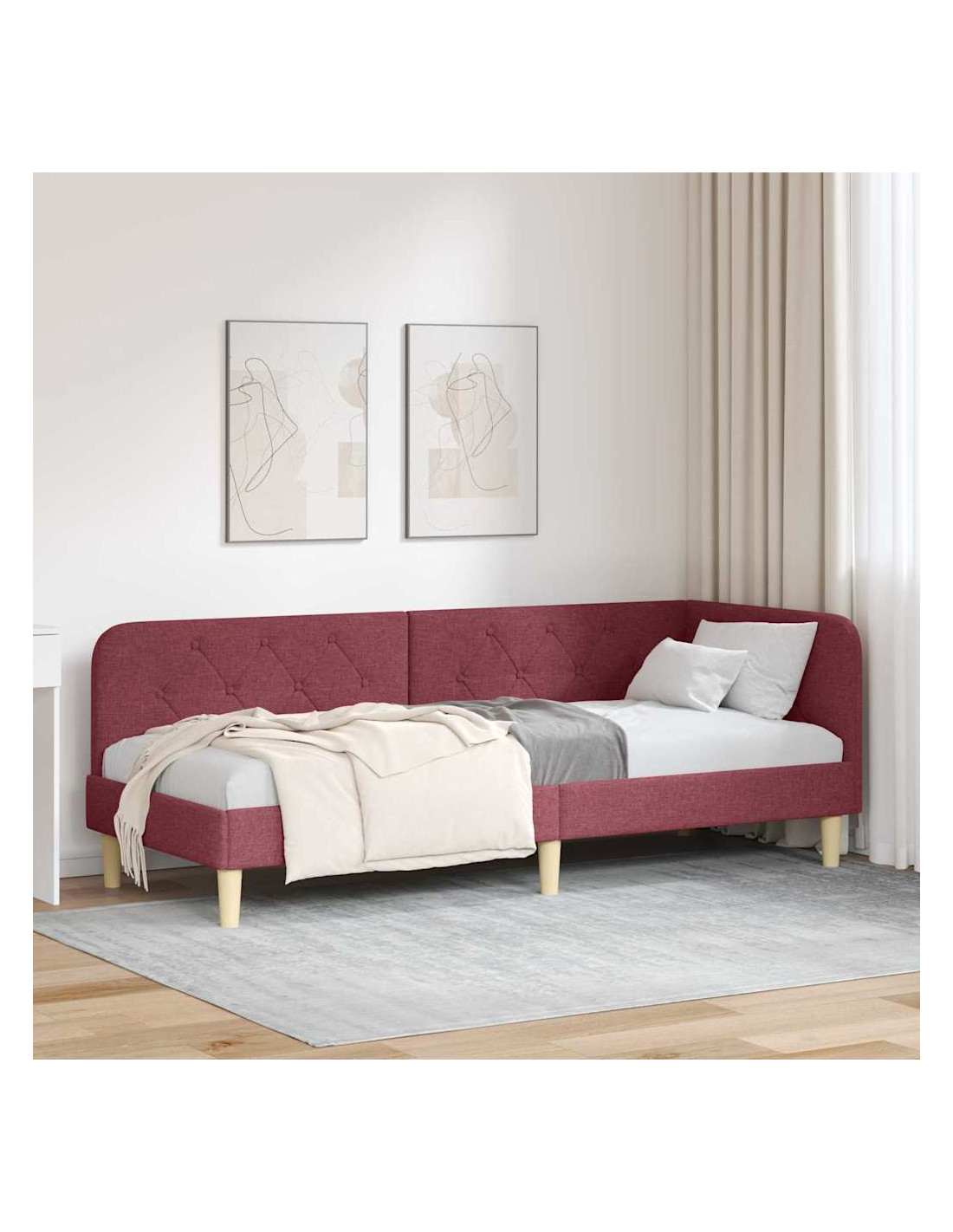 Questo telaio del letto angolare in tessuto è un letto giorno moderno pensato per il relax e il sonno. La struttura a L è ideale per qualsiasi angolo della camera e può essere usata come divano o letto. Perfetto per chi ama la praticità senza rinunciare all'estetica, offre un tocco contemporaneo adatto a varie disposizioni.