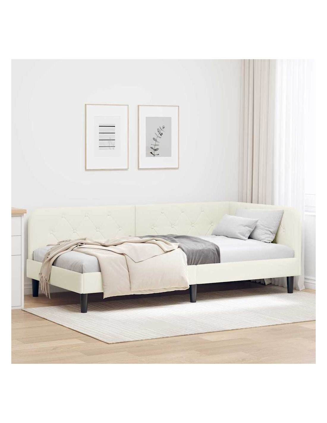 Questa struttura per letto giorno è la soluzione ideale per camere che hanno bisogno di qualcosa di versatile e salvaspazio. Con il suo rivestimento in velluto che dà un tocco di eleganza e il design a forma di L, funziona sia da divano che da letto, perfetta per appartamenti oppure per stanze degli ospiti. Le linee semplici e il design minimalista la rendono moderna e in equilibrio tra funzionalità e stile.