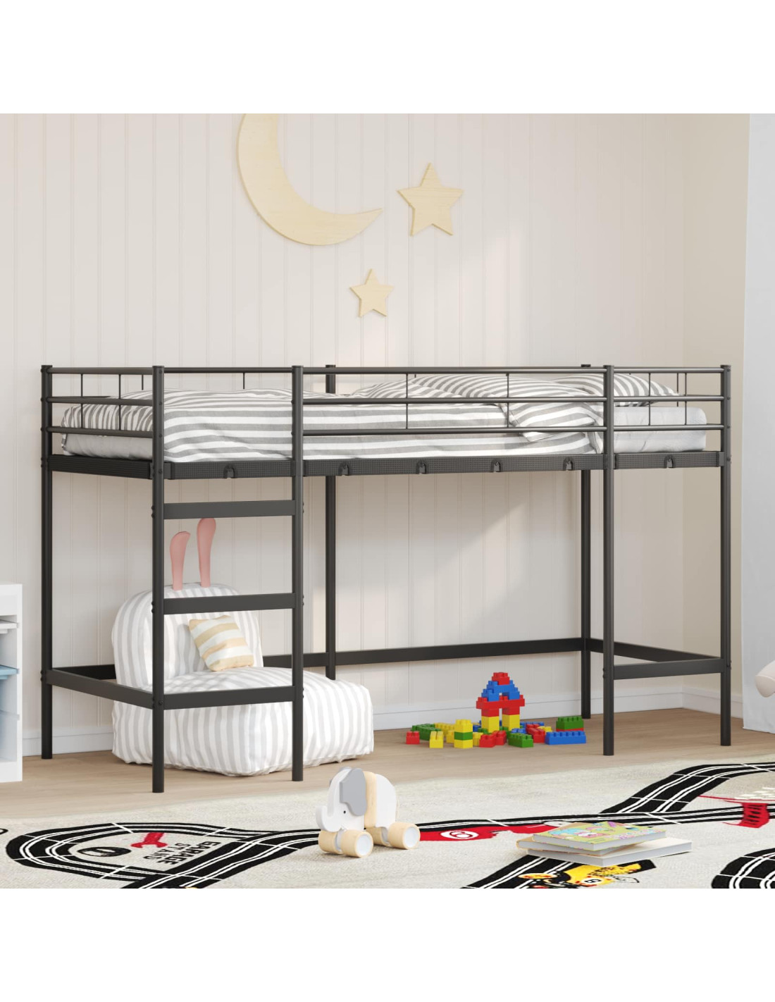 - Materiale in Acciaio Premium Questo letto a castello è fatto in acciaio premium per garantire durata. Questa scelta assicura stabilità e resistenza, perché regge i giochi dei bambini. La superficie liscia e la vernice a polvere lo rendono resistente all'usura, mantenendo un aspetto gradevole.