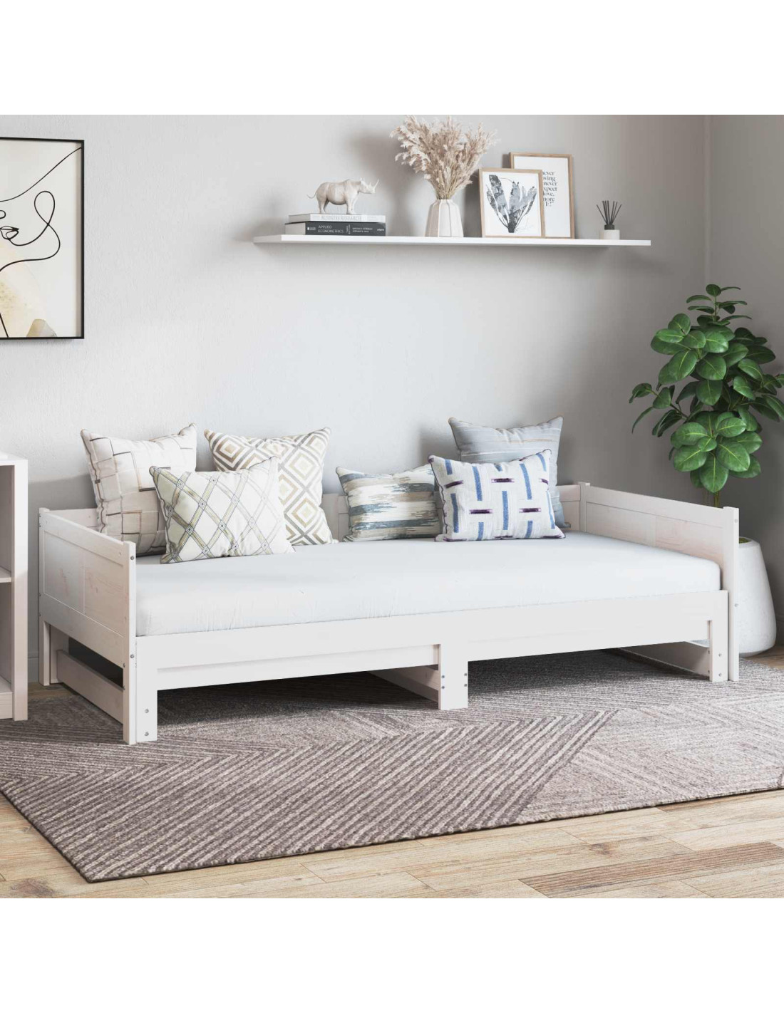 - Struttura robusta: Realizzato in legno massello di pino, questo day bed è resistente e duraturo. La sua solidità è ideale per un uso frequente, anche come soluzione di sonno principale.