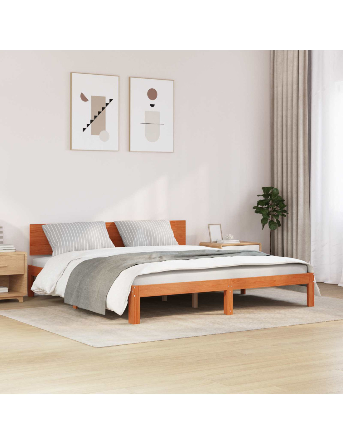 - Costruzione in Legno Massello di Pino Fatta in legno massello di pino, questo letto unisce resistenza e stile. Il pino è forte e bello, e offre non solo un aspetto gradevole, ma anche una base solida per il riposo. La sua finitura naturale scalda ogni ambiente.