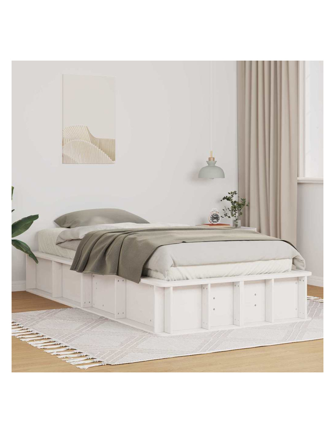 Questo telaio del letto a piattaforma unisce bellezza e praticità, migliorando sia l'aspetto che la funzionalità di qualsiasi camera. Fatto in uno stile moderno, mostra eleganza con linee semplici e un design minimale. Il legno di pino massello aggiunge un tocco naturale e duraturo, creando un'atmosfera calda e accogliente per chi cerca di completare l'arredamento della propria camera.