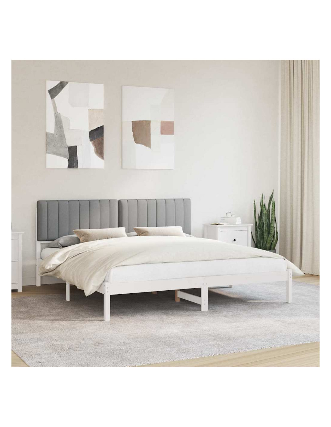 Questa struttura letto in legno con testiera imbottita è un'ottima aggiunta a qualsiasi camera, combinando stile sofisticato e minimalista. La sua forma rettangolare è pensata per l'uso interno, creando un'atmosfera serena per sonni riposanti e relax.