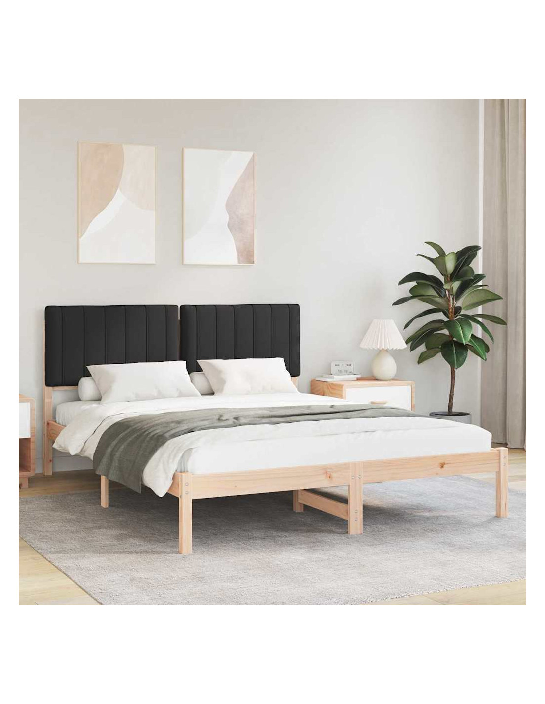 Questa struttura letto in legno con testiera imbottita è un'ottima aggiunta a qualsiasi camera, combinando stile sofisticato e minimalista. La sua forma rettangolare è pensata per l'uso interno, creando un'atmosfera serena per sonni riposanti e relax.