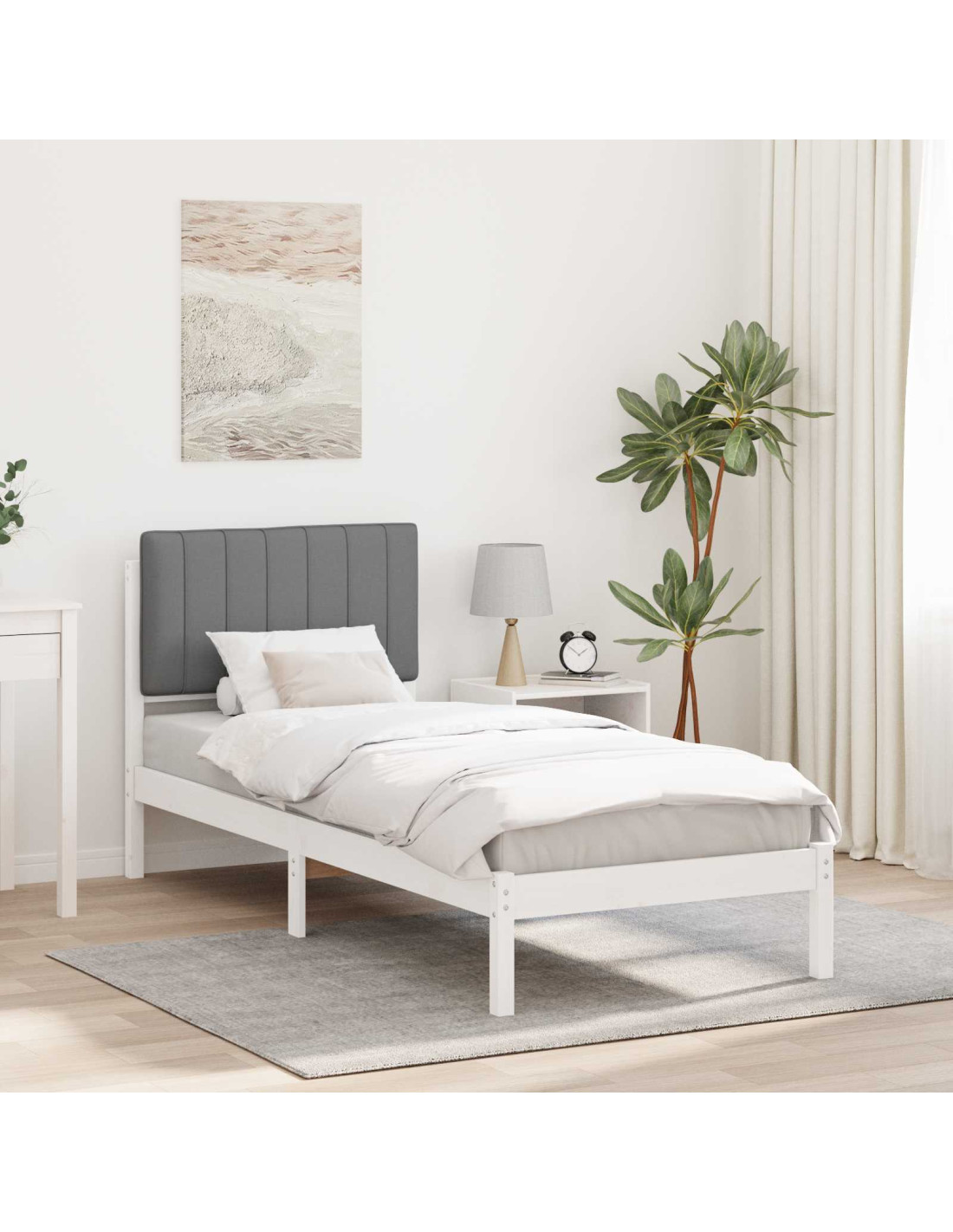 Questa struttura letto in legno con testiera imbottita è un'ottima aggiunta a qualsiasi camera, combinando stile sofisticato e minimalista. La sua forma rettangolare è pensata per l'uso interno, creando un'atmosfera serena per sonni riposanti e relax.