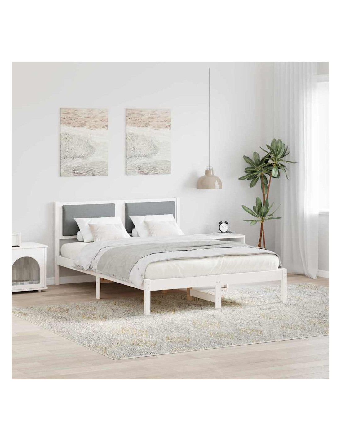 - Struttura in Legno Massello di Pino Questo letto è fatto di legno massello di pino di alta qualità e offre stabilità e durata, resistendo all'uso quotidiano. La texture naturale dei materiali aggiunge un tocco accogliente e bello alla tua camera.