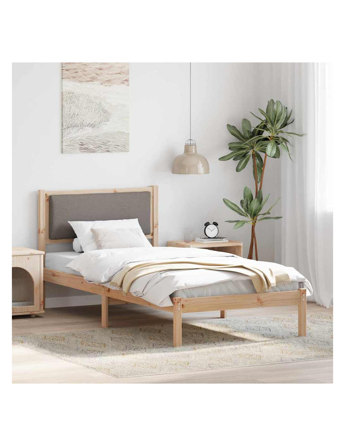 - Struttura in Legno Massello di Pino Questo letto è fatto di legno massello di pino di alta qualità e offre stabilità e durata, resistendo all'uso quotidiano. La texture naturale dei materiali aggiunge un tocco accogliente e bello alla tua camera.