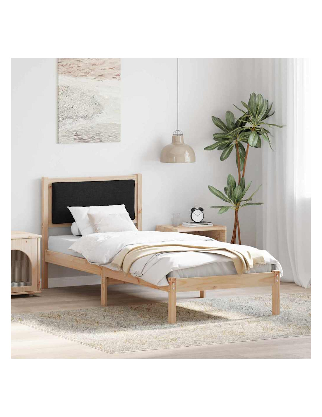 - Struttura in Legno Massello di Pino Questo letto è fatto di legno massello di pino di alta qualità e offre stabilità e durata, resistendo all'uso quotidiano. La texture naturale dei materiali aggiunge un tocco accogliente e bello alla tua camera.