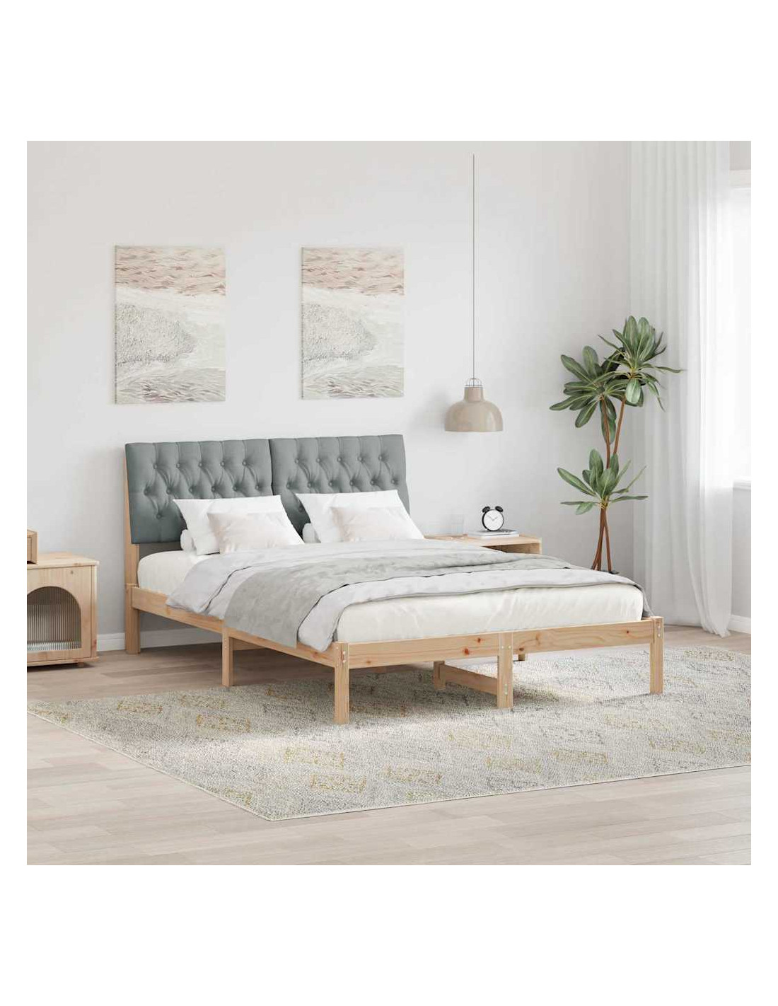 - Durabilità e Funzione: Usando materiali come truciolare e legno massello di pino, la struttura è pensata per durare, mantenendo un aspetto chic. Il design semplice rende facile abbinare vari stili di decorazione della camera da letto.