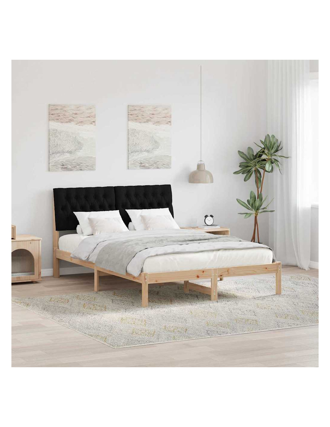 - Durabilità e Funzione: Usando materiali come truciolare e legno massello di pino, la struttura è pensata per durare, mantenendo un aspetto chic. Il design semplice rende facile abbinare vari stili di decorazione della camera da letto.