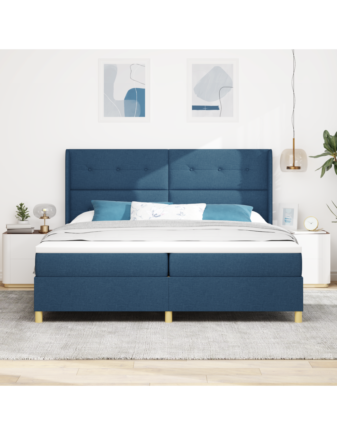 Questo Modern Box Spring Bed è perfetto per qualsiasi camera da letto. Combina comfort di lusso con un look elegante e contemporaneo. Con linee essenziali e uno stile funzionale, è progettato per dare un tocco in più al tuo spazio, assicurando anche un sonno ristoratore per tutti. La struttura a molle offre supporto e resistenza, soddisfacendo diverse abitudini di sonno grazie al suo materasso in schiuma medio-rigido.