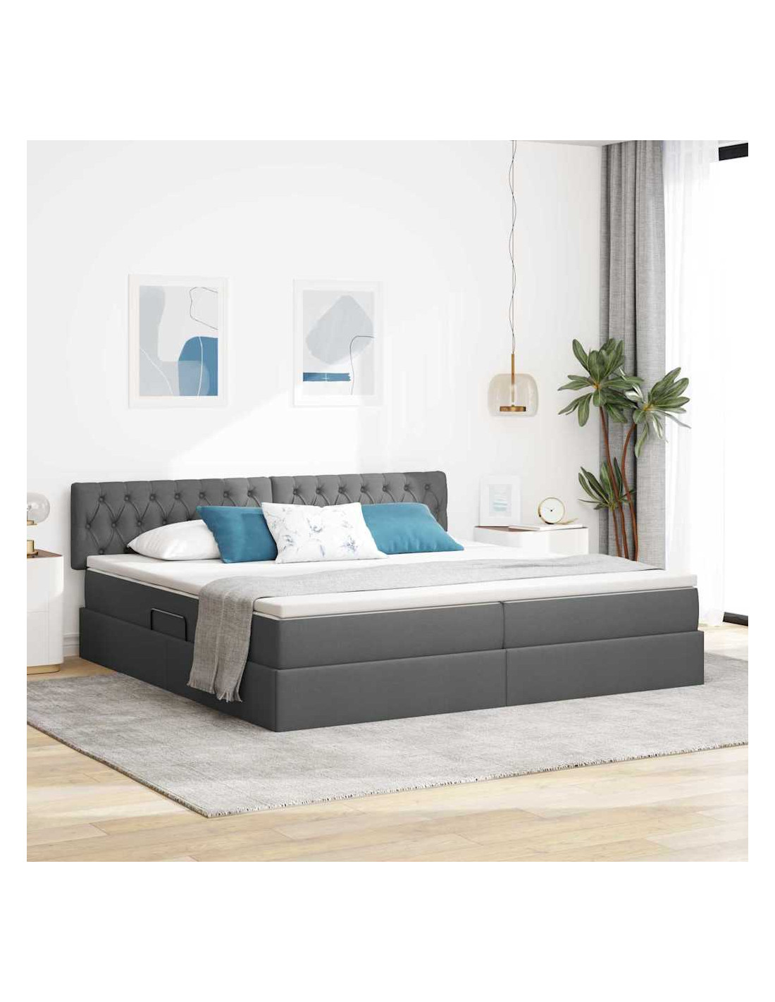 - Forma rettangolare: Questo letto con contenitore ha una forma rettangolare che si adatta perfettamente alla maggior parte delle camere. Il design moderno è elegante e si integra bene con qualsiasi arredamento, creando un colpo d'occhio che arricchisce l’ambiente con semplicità.