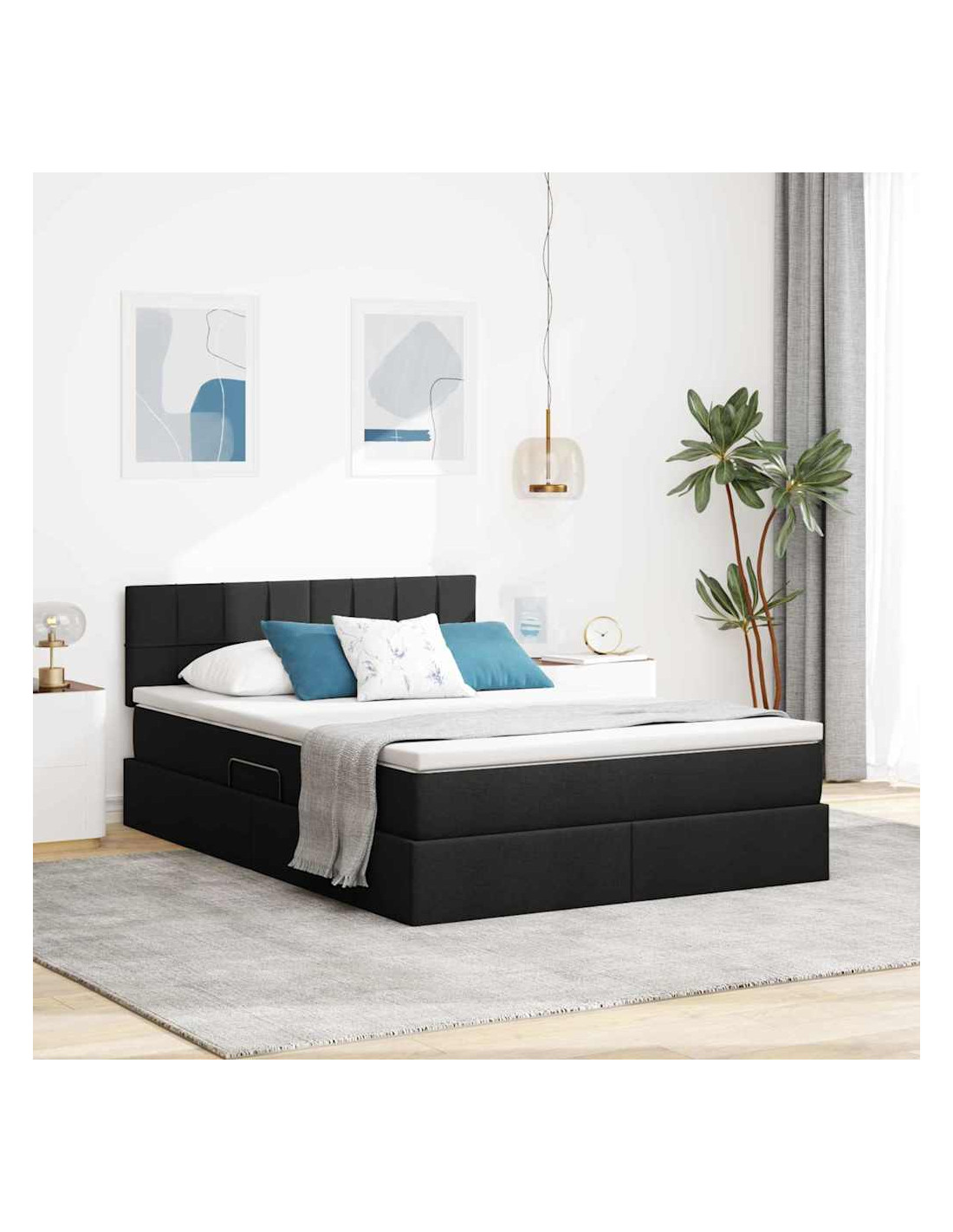Questo letto moderno con materasso unisce funzionalità e stile, ideale per una camera da letto contemporanea. La forma rettangolare e il design minimalista vanno d'accordo con il pratico spazio di stoccaggio sotto, che si apre con un meccanismo di sollevamento idraulico, quindi è super per chi cerca di ottimizzare lo spazio e restare trendy. La finitura nera del telaio e il poliestere gli danno un aspetto sofisticato, mentre il materasso di media rigidità garantisce comfort per tutte le posizioni di sonno. In sintesi, questo letto trasforma qualsiasi camera in un luogo moderno, bilanciando bellezza e utilità.