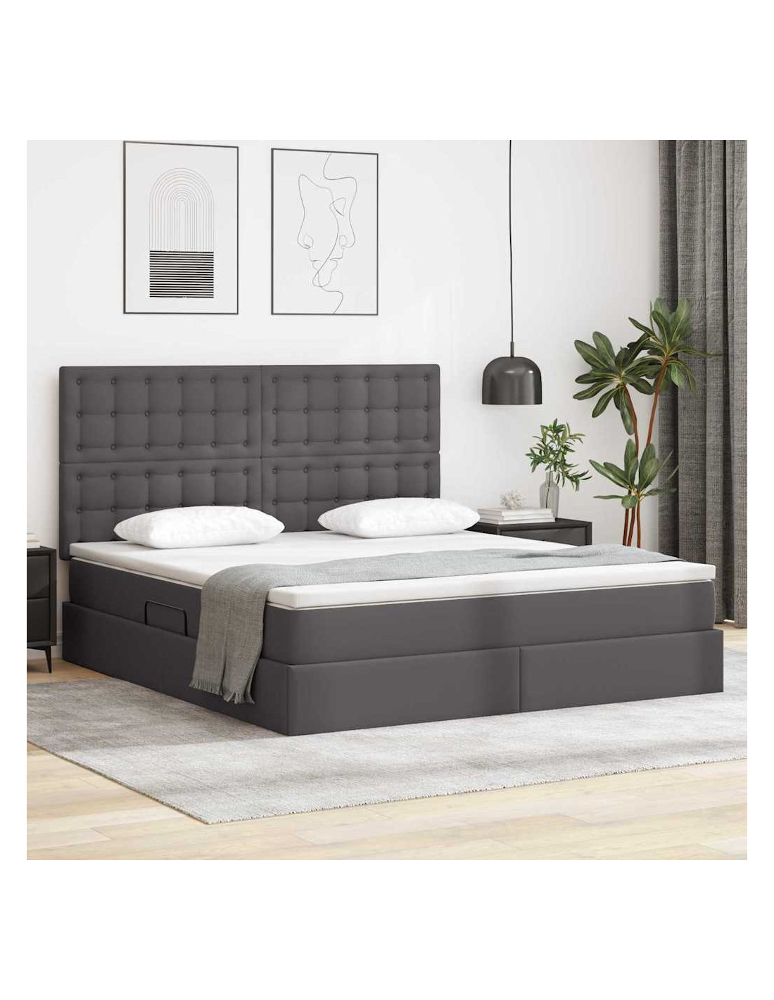 - Rivestimento in pelle sintetica: Questo letto è coperto in pelle sintetica di alta qualità, assicurando un aspetto e una sensazione di lusso. Questo materiale è scelto per la sua eleganza e durata, dando un aspetto classy senza i problemi della vera pelle. Facile da pulire e resistente, è l'ideale per chi cerca uno stile chic e low maintenance.